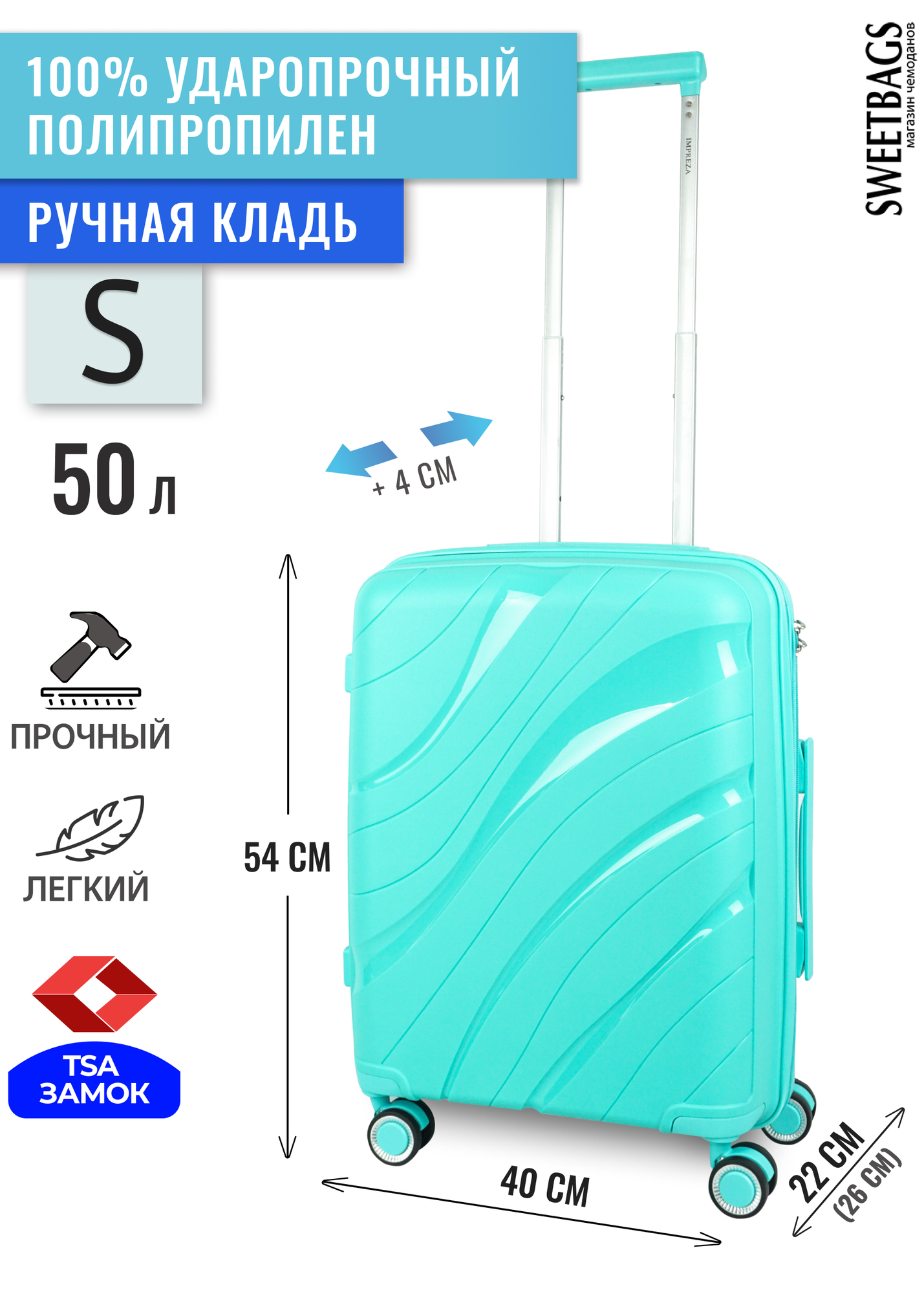 СохранитьЧемодан Sweetbags маленький (ручная кладь) из полипропилена с расширением на 4-х колесах с TSA замком (волны) мятный S интересное: