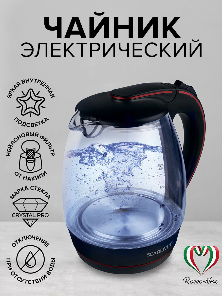 Чайник электрический Scarlett SC-EK27G71, коллекция Rosso-Nero