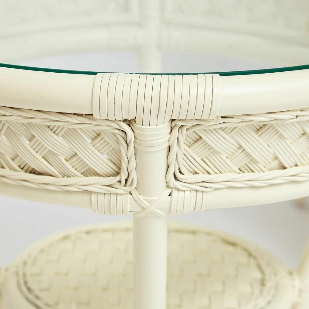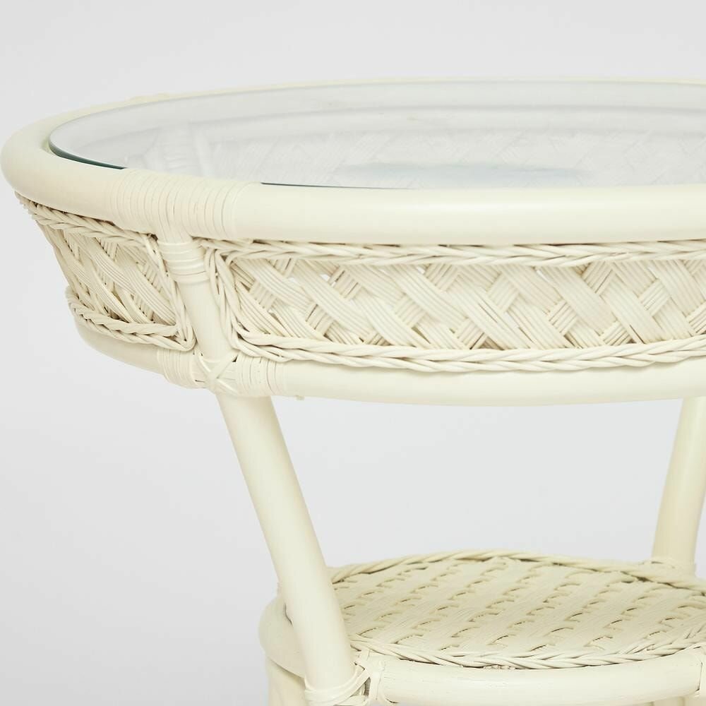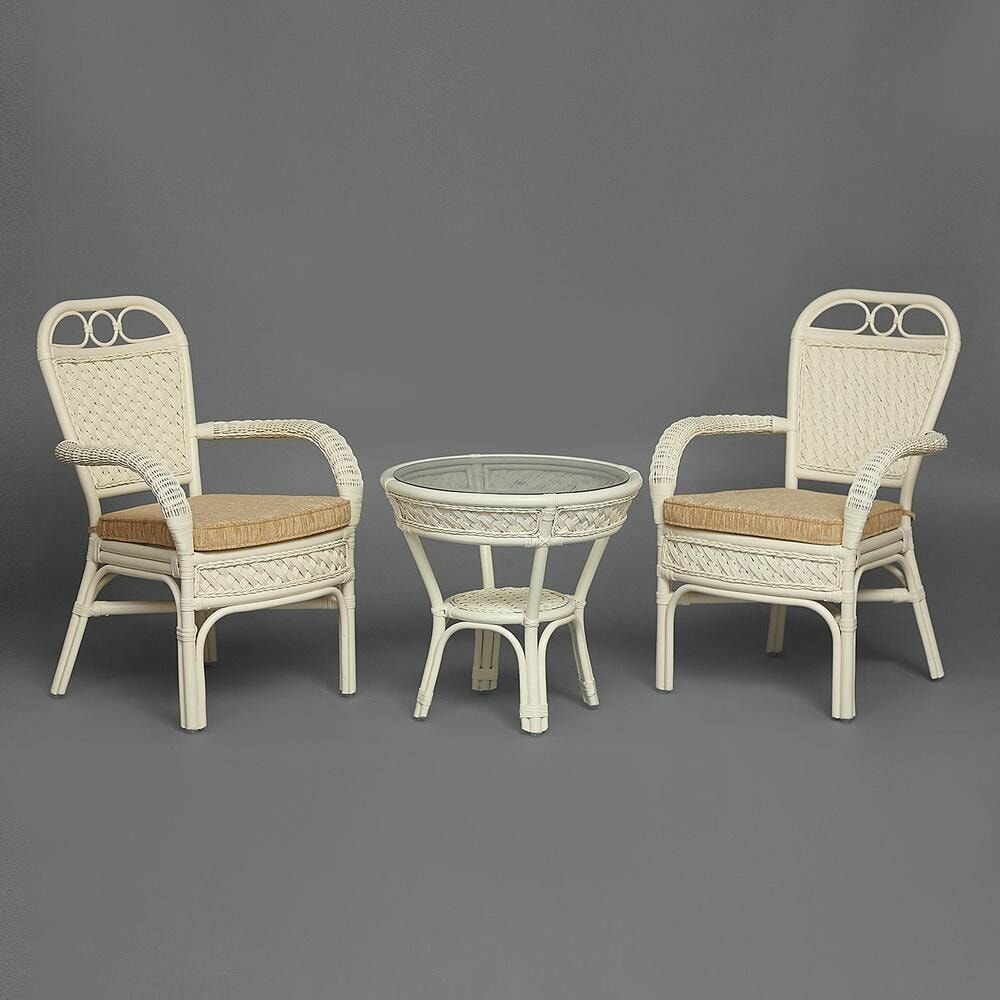 Комплект террасный ANDREA (стол кофейный со стеклом + 2 кресла + подушки)ротанг, 64х67х92см / D60х55, TCH White (белый)