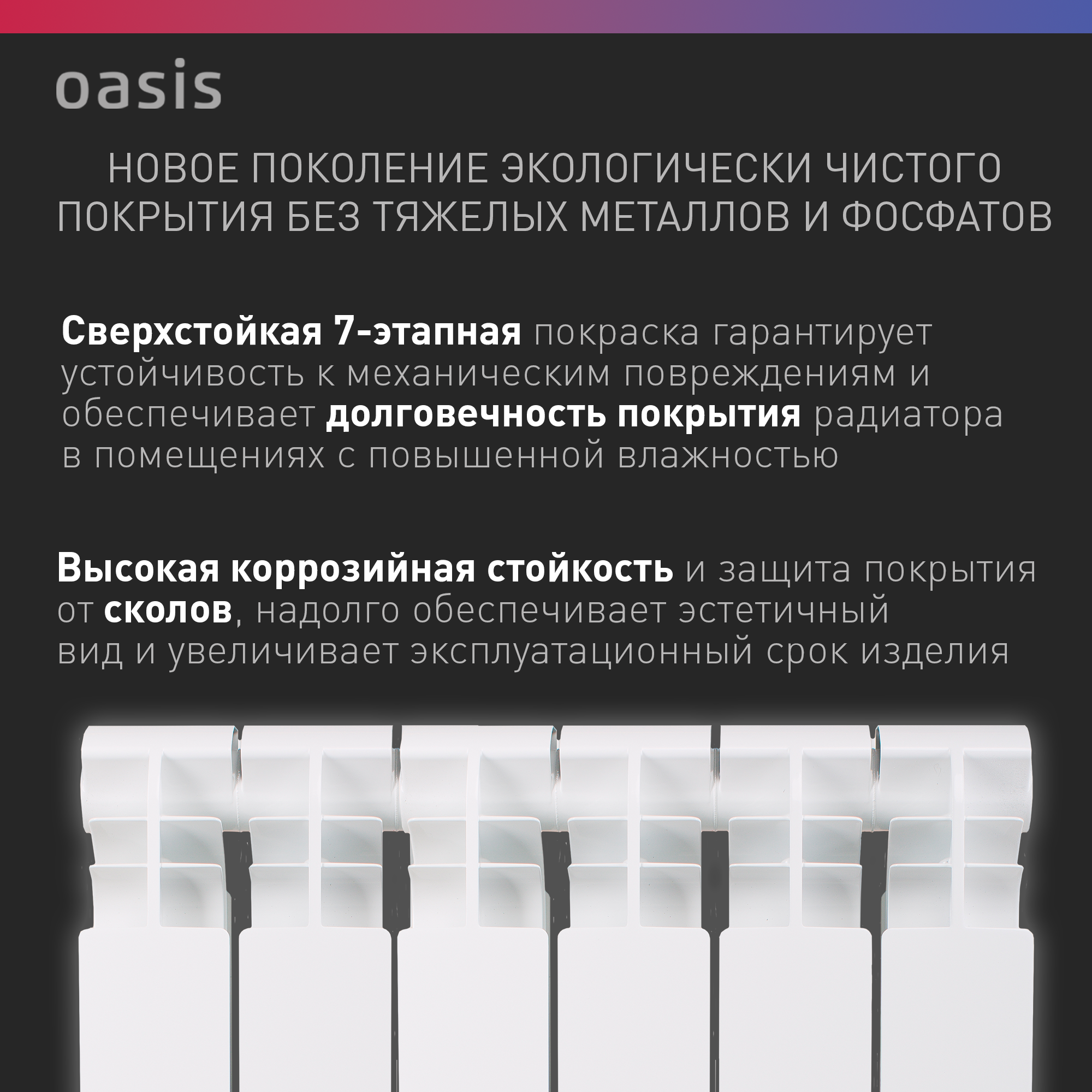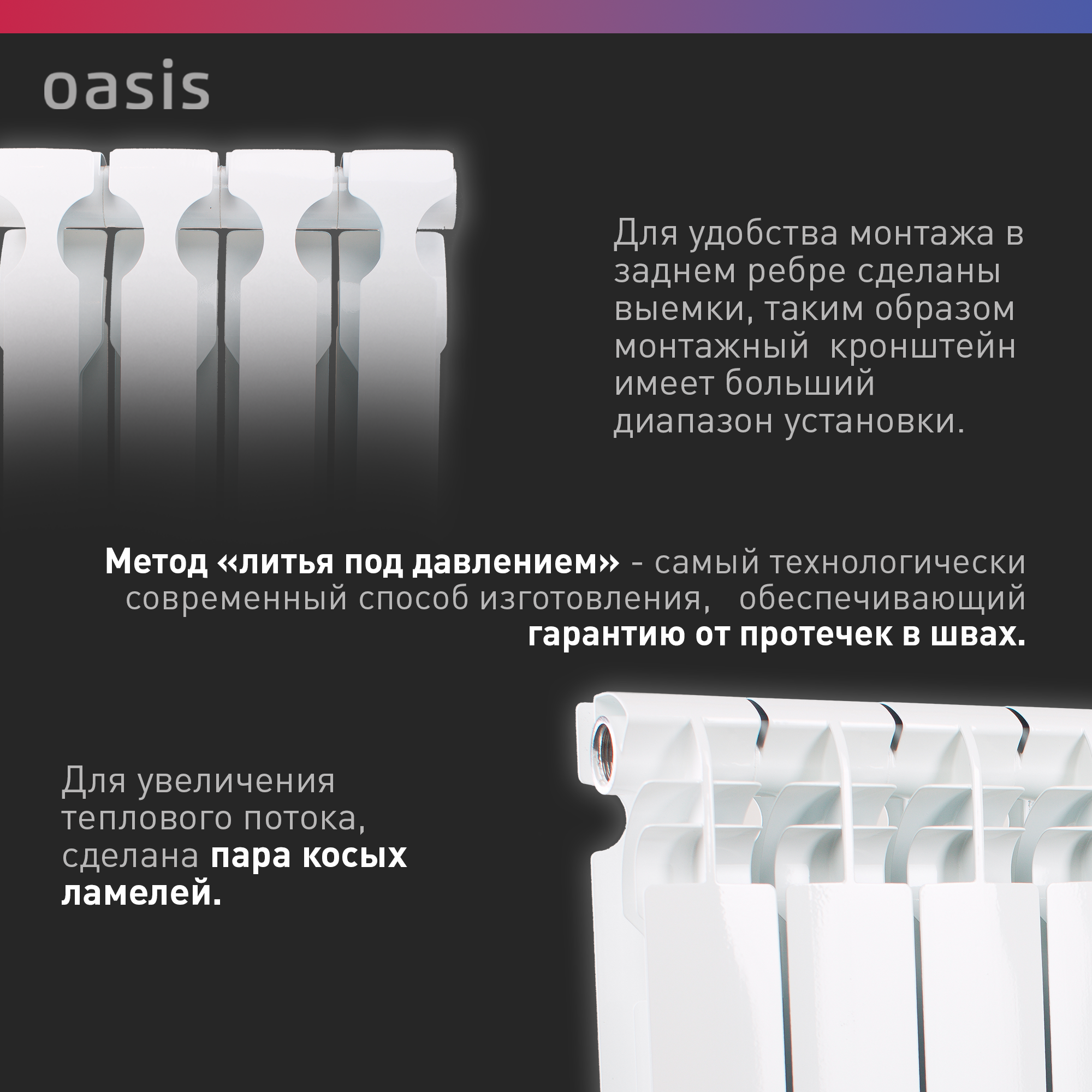 СохранитьРадиатор алюминиевый литой OASIS PRO 6 секций, 500/96/6 (Россия) интересное: