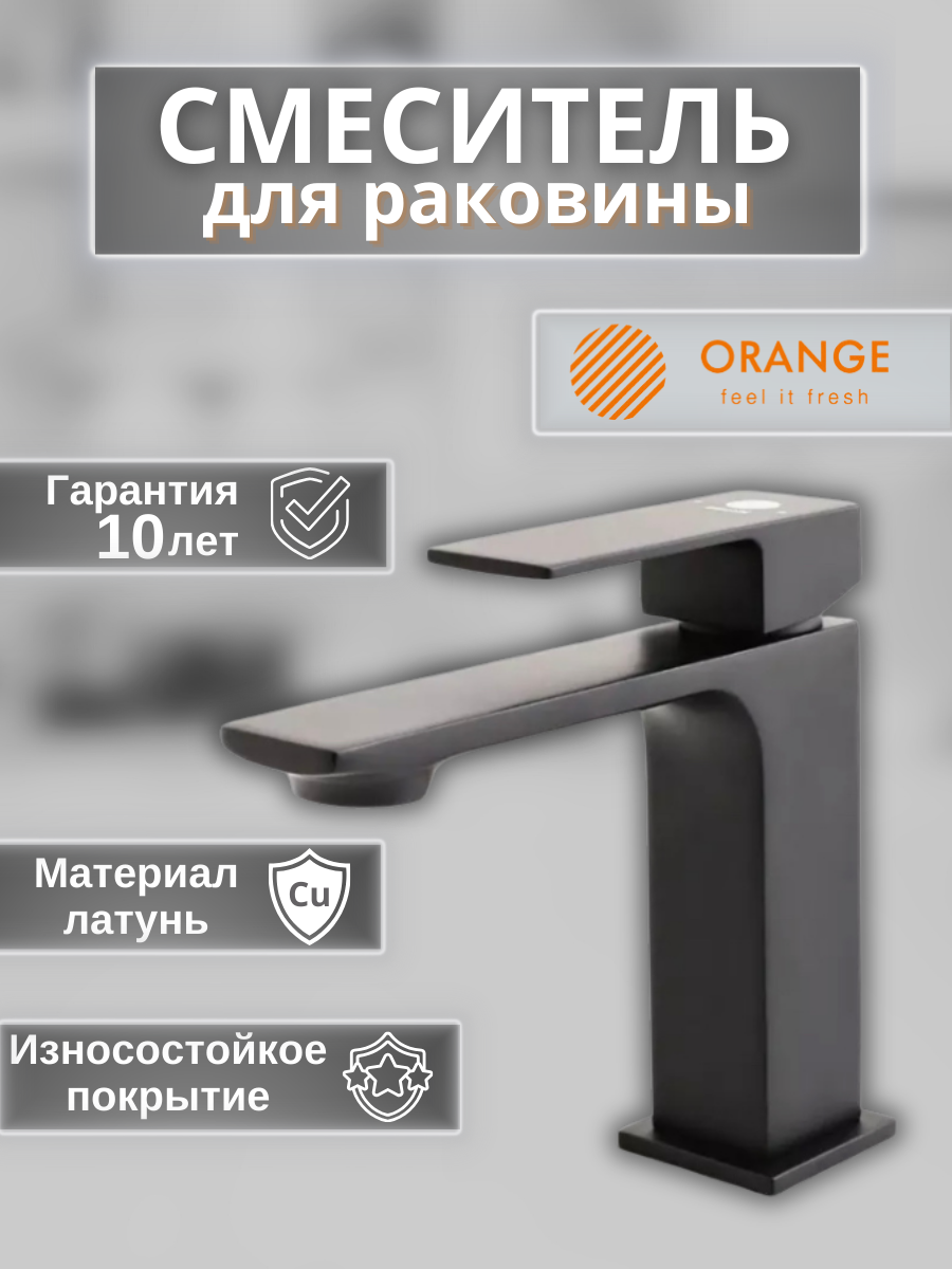 Смеситель для раковины в ванную комнату, латунь, фиксированный излив Orange Lutz M04-021b, черный интересное:
