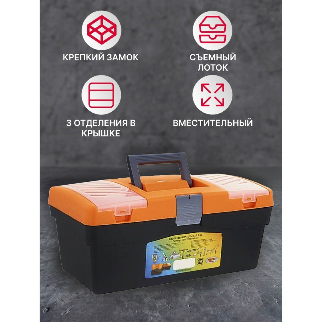Купить Ящик для инструментов, 17 '', 42х22х18 см, пластик, Profbox, пластиковый замок, лоток, 2 органайзера на крышке, А-42