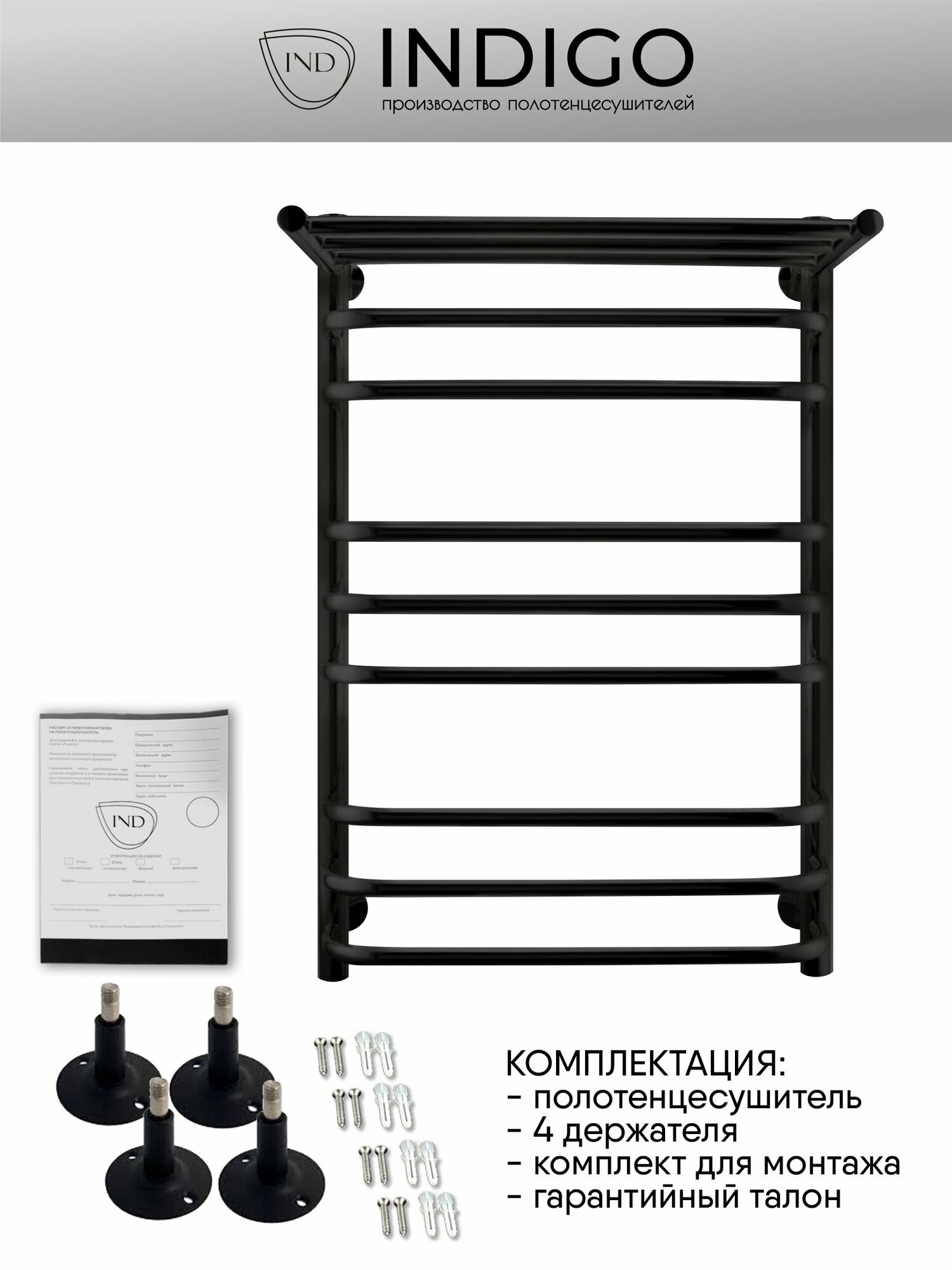 Полотенцесушитель водяной INDIGO Brace с полкой 80/50 Черный муар