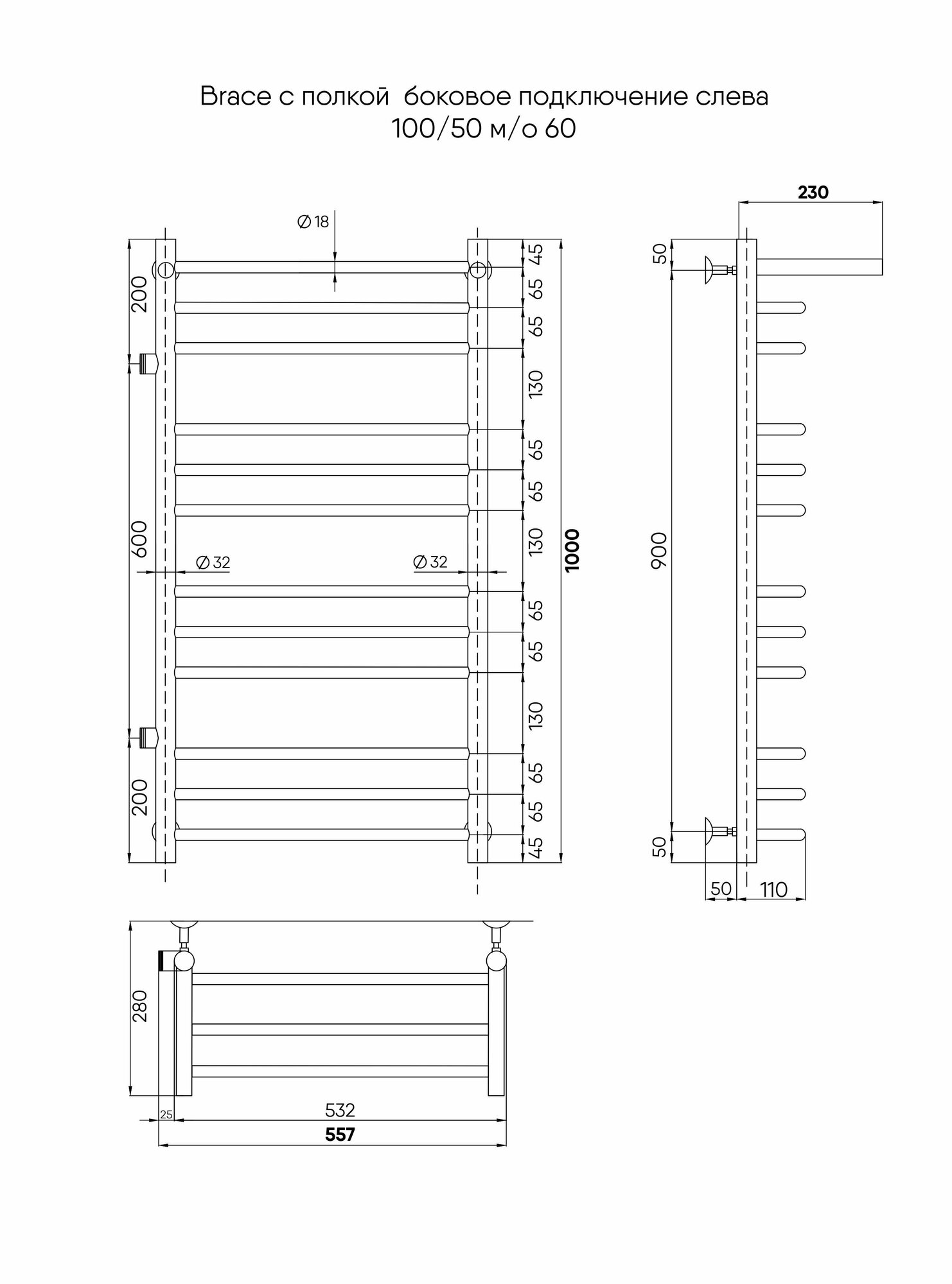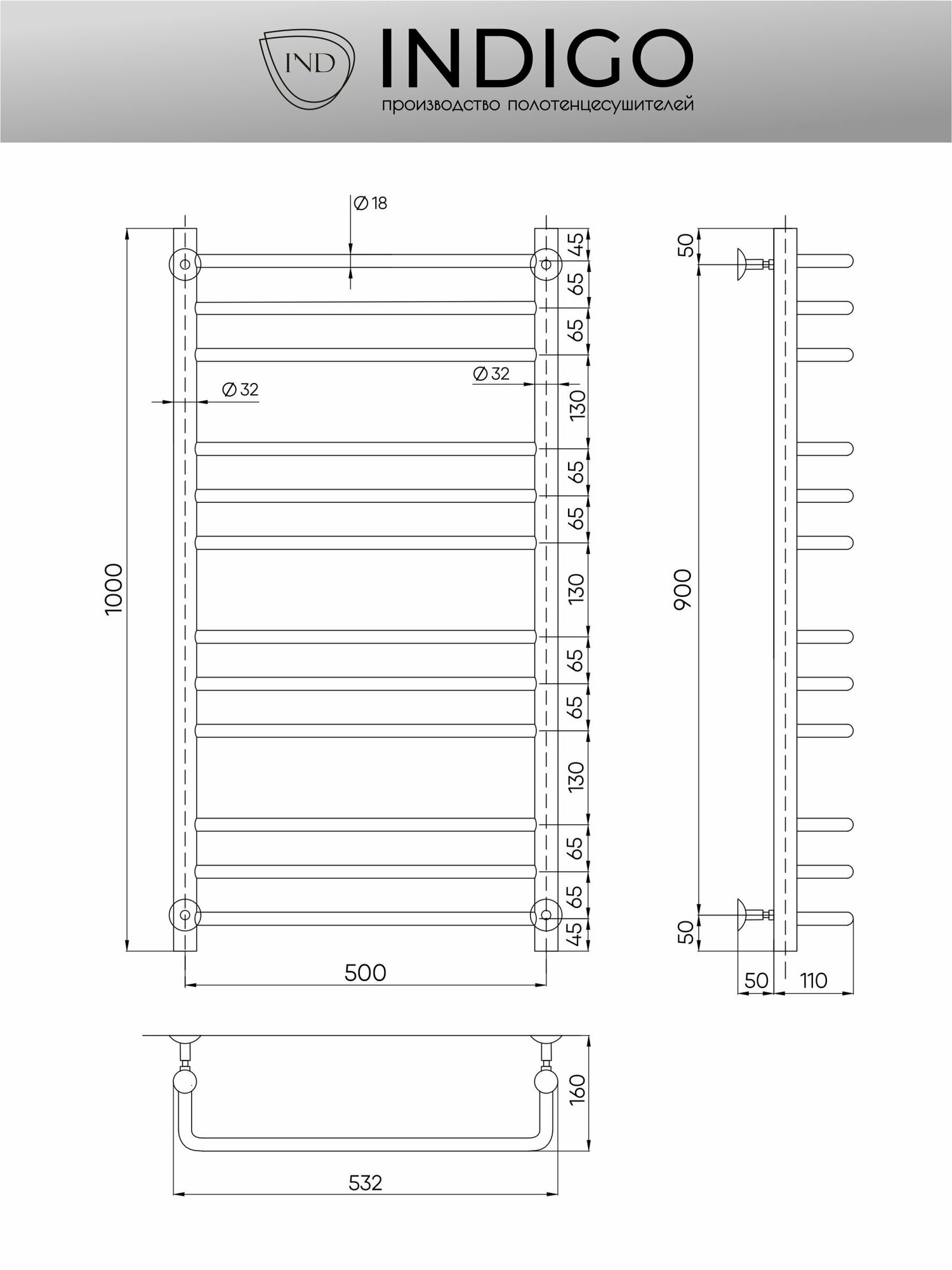 INDIGO LBCW100-50BR Водяной полотенцесушитель без полочки, черный интересное: