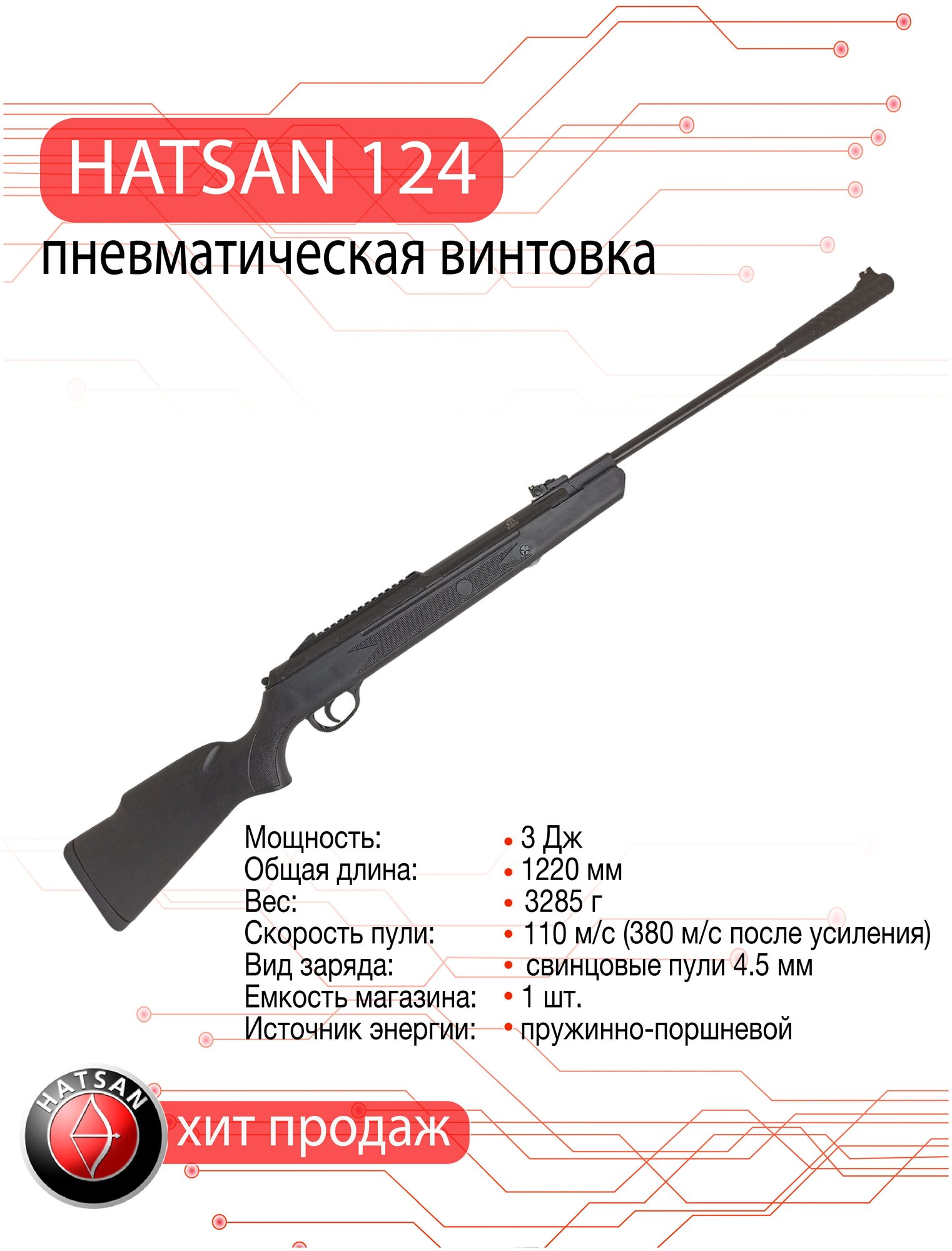 Пневматическая винтовка Hatsan 124 (переломка, пластик), калибр 4,5 мм, 3 Дж интересное: