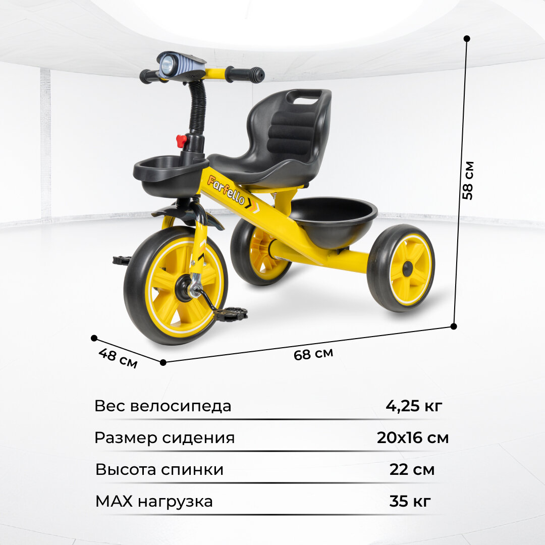 Купить Трехколесный велосипед для детей Farfello 207 / корзина для игрушек / свет и музыка / цвет желтый