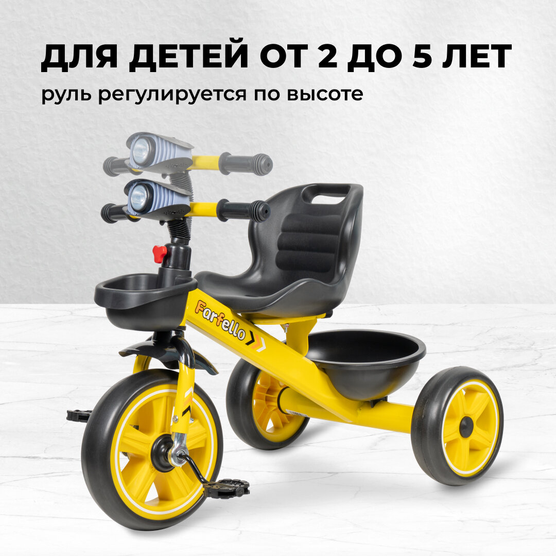 Трехколесный велосипед для детей Farfello 207, корзина для игрушек, свет и музыка, цвет желтый