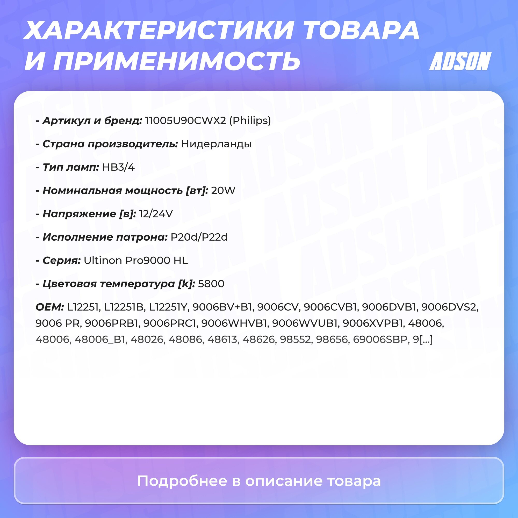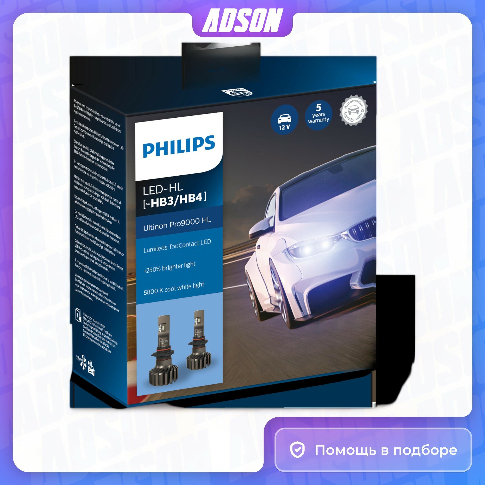 Лампа Hb3/4 Ultinon Pro9000 Led 5800K, 2Шт. P20d, P22d Х2 Philips арт. 11005U90CWX2