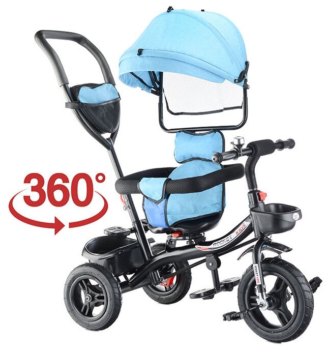 Велосипед детский трёхколесный, с родительской ручкой и козырьком ROCKET 5188FB-1 3-х колесный, синий