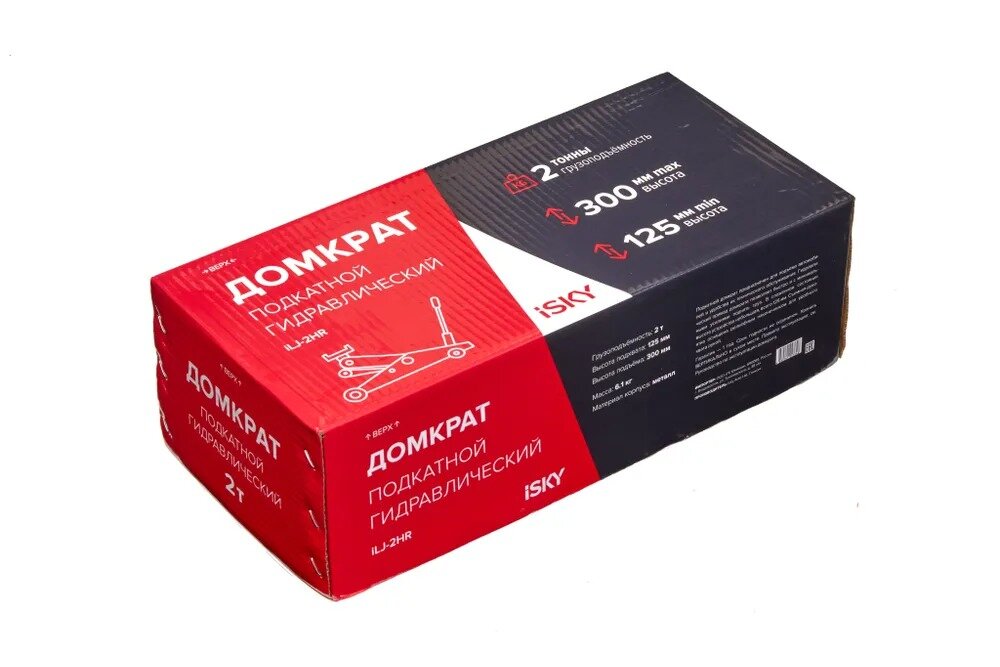 Домкрат автомобильный подкатной гидравлический iSky, 2т, от 125 до 300 мм, в картонной коробке арт. iLJ-2HR