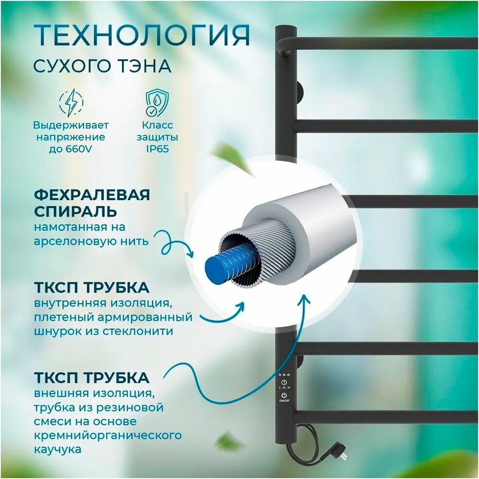 Полотенцесушитель Электрический Тругор Пэк сп 5 П 60х50 черный ВГП