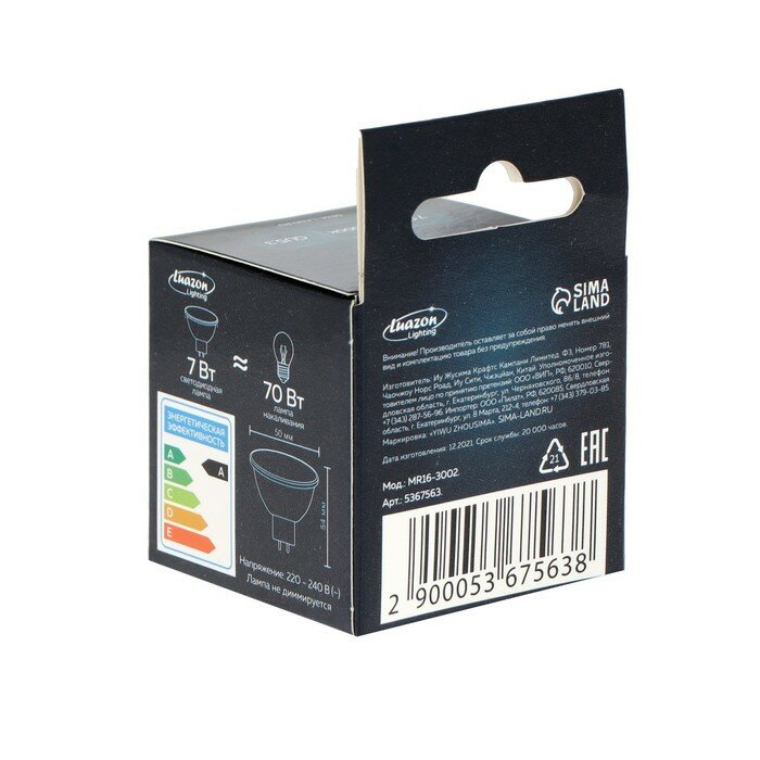 Luazon Lighting Лампа cветодиодная Luazon MR16, GU5.3, 7 Вт, 630 Лм, 4000 К, дневной свет интересное: