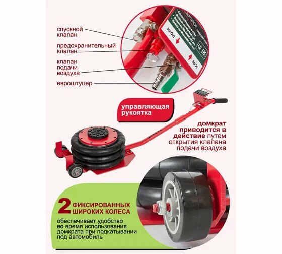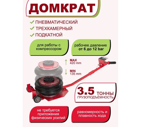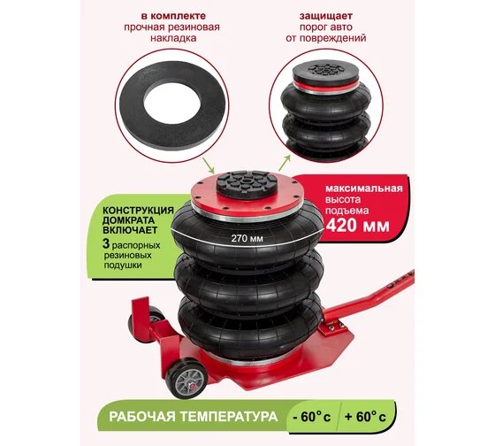 ROCKFORCE Домкрат подкатной пневматический 3т, h=135-420мм, D-270мм RF-YHQD-3WT-270A интересное: