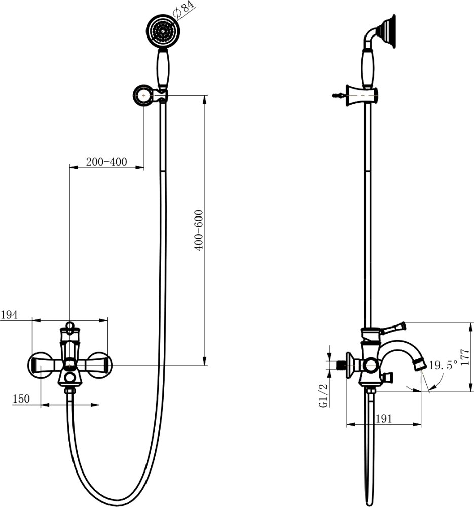 Bronze de Luxe Душевой комплект Bronze de Luxe Scandi 14582BR с внутренней частью, бронза
