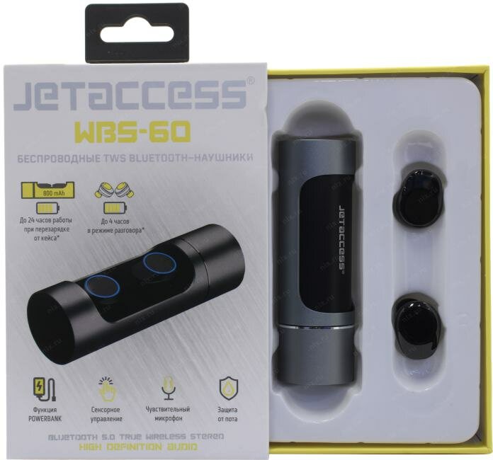 Купить Беспроводные BLUETOOTH наушники JETACCESS WBS-60 черный-серый(BT5.0,сенс.упр.,800mAh, powebank)