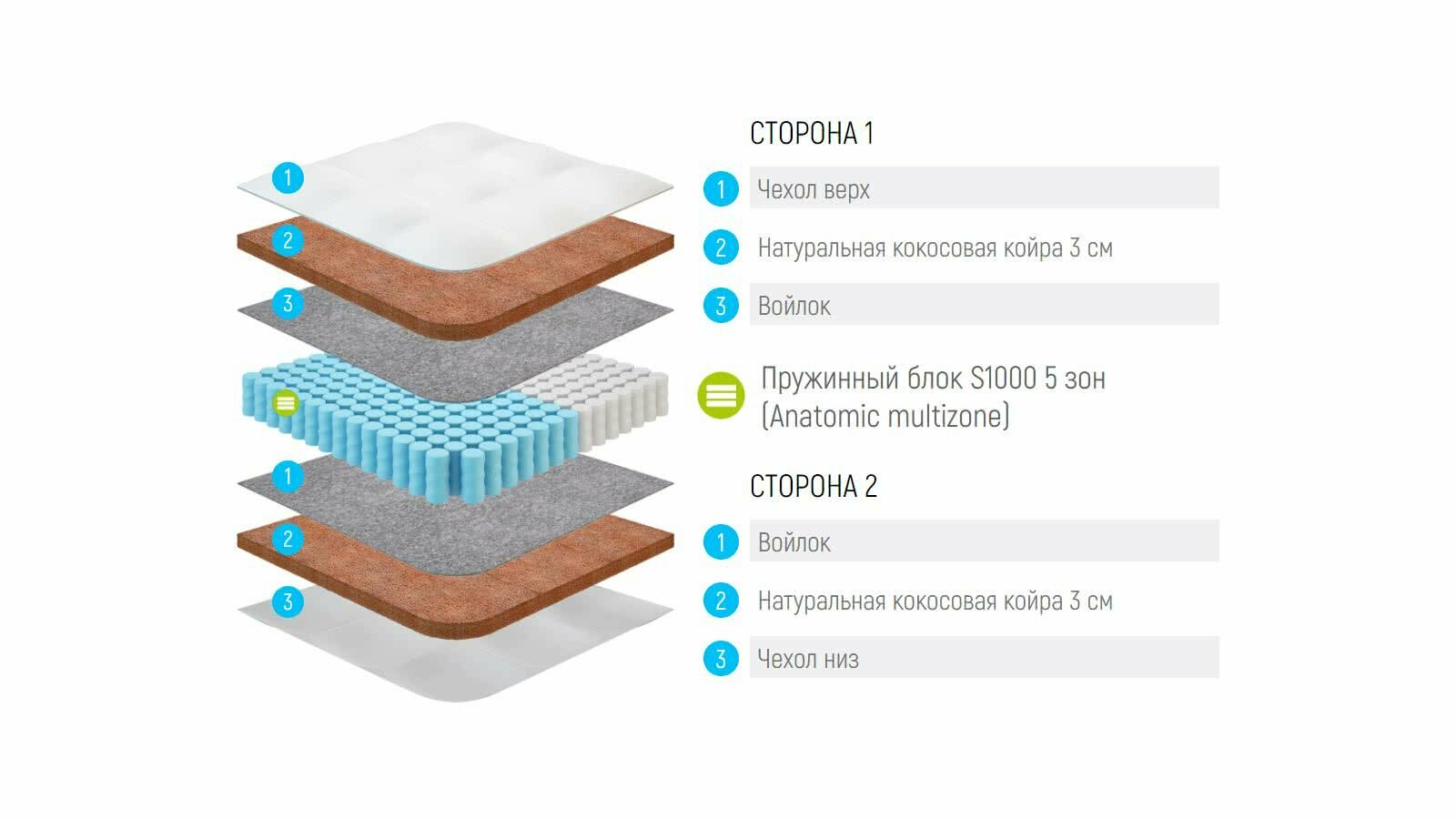 Россия Матрас Lonax Cocos S1000 5 Zone 130x205