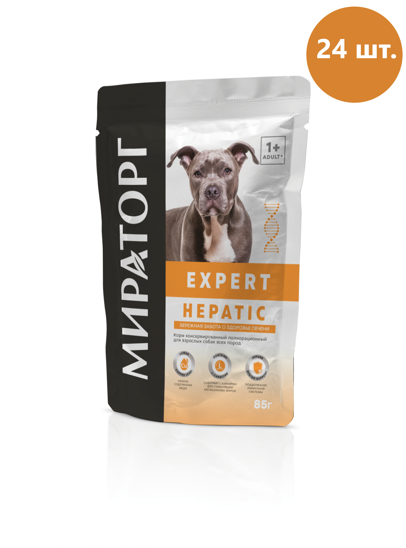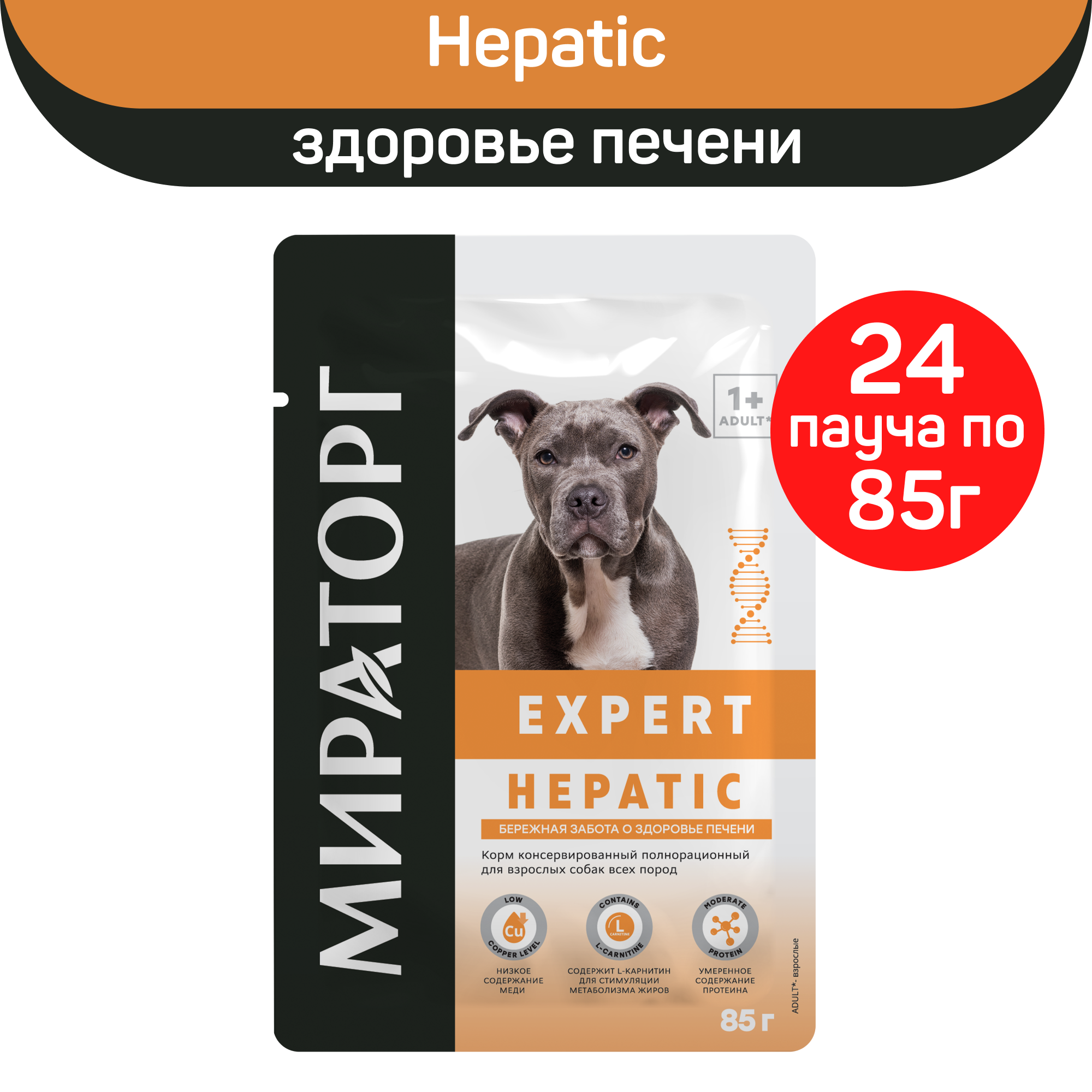 Мираторг EXPERT HEPATIC для взрослых собак при заболеваниях печени (85 гр х 24 шт)