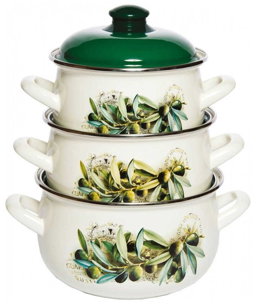 Купить Маслины Набор 3-х предметный/Набор кастрюль/Кастрюли/Набор посуды для приготовления 2,1л; 3,1л; 4,0л
