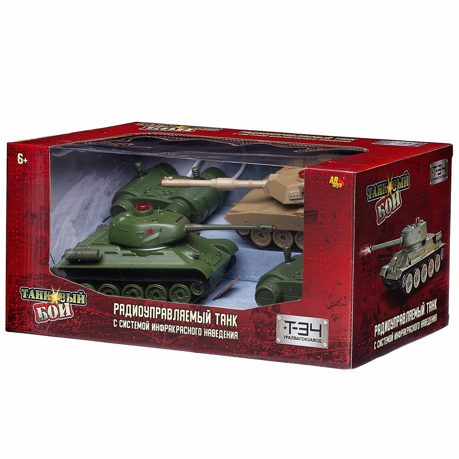| Комплектация | 2 танка (Т-34 и Abrams), 2 пульта радиоуправления, 2 аккумулятора питания 3,6V., 2 зарядных устройства, инструкция. |