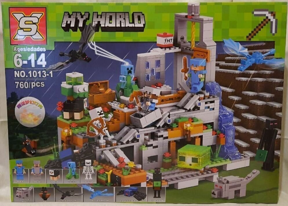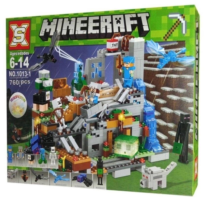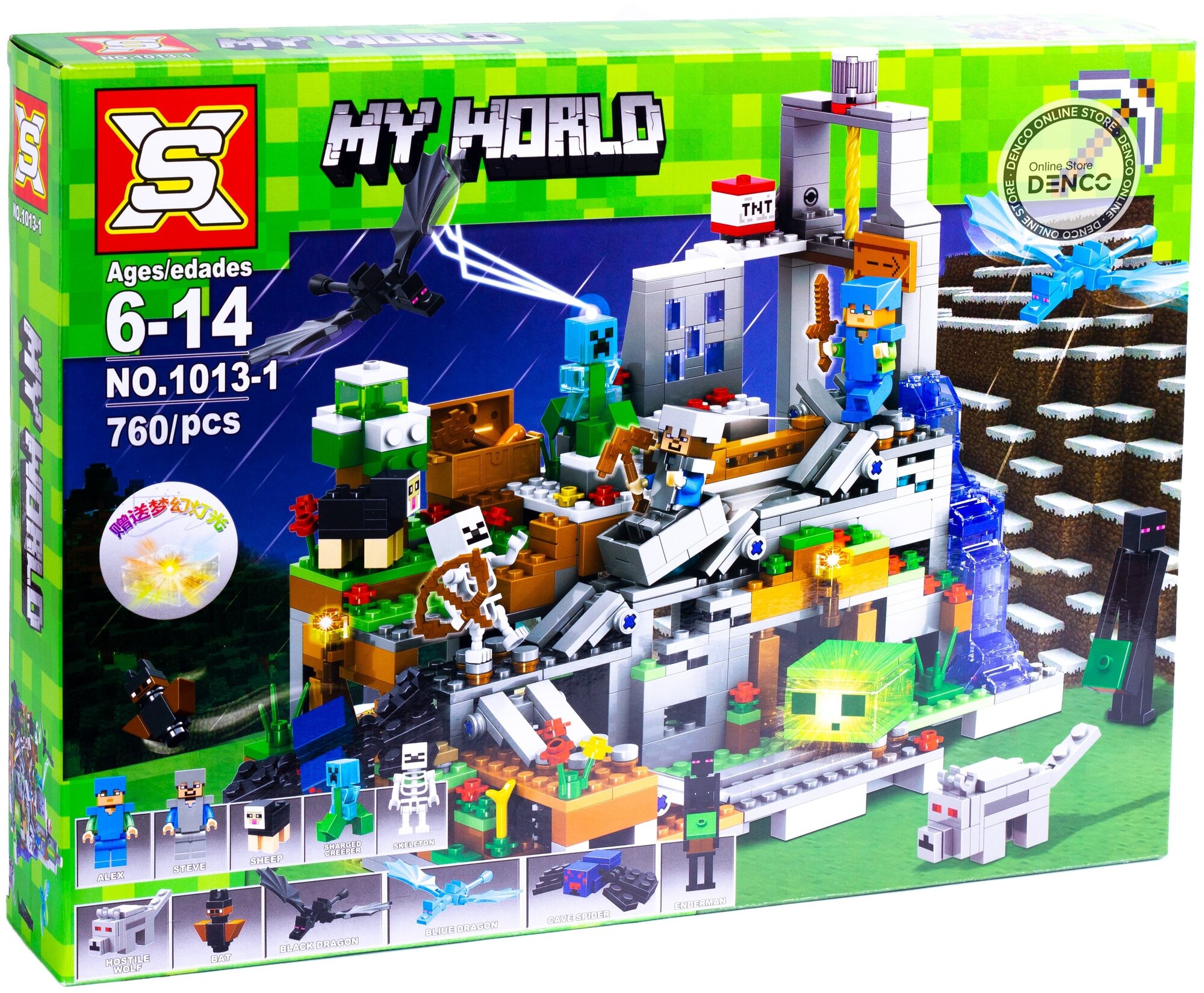 Купить Конструктор/ Мой Мир/ Майнкрафт/ Деревня Стива / Горная пещера/ 760 деталей/ 1013-1/ Подарок