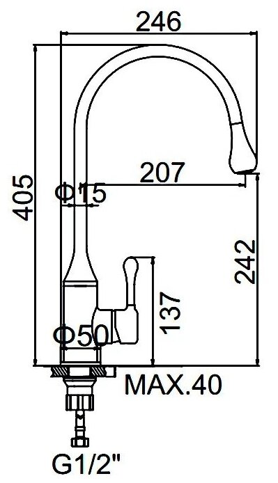 4599 Смеситель Кухня LEDEME d-40 на гайке (хром)