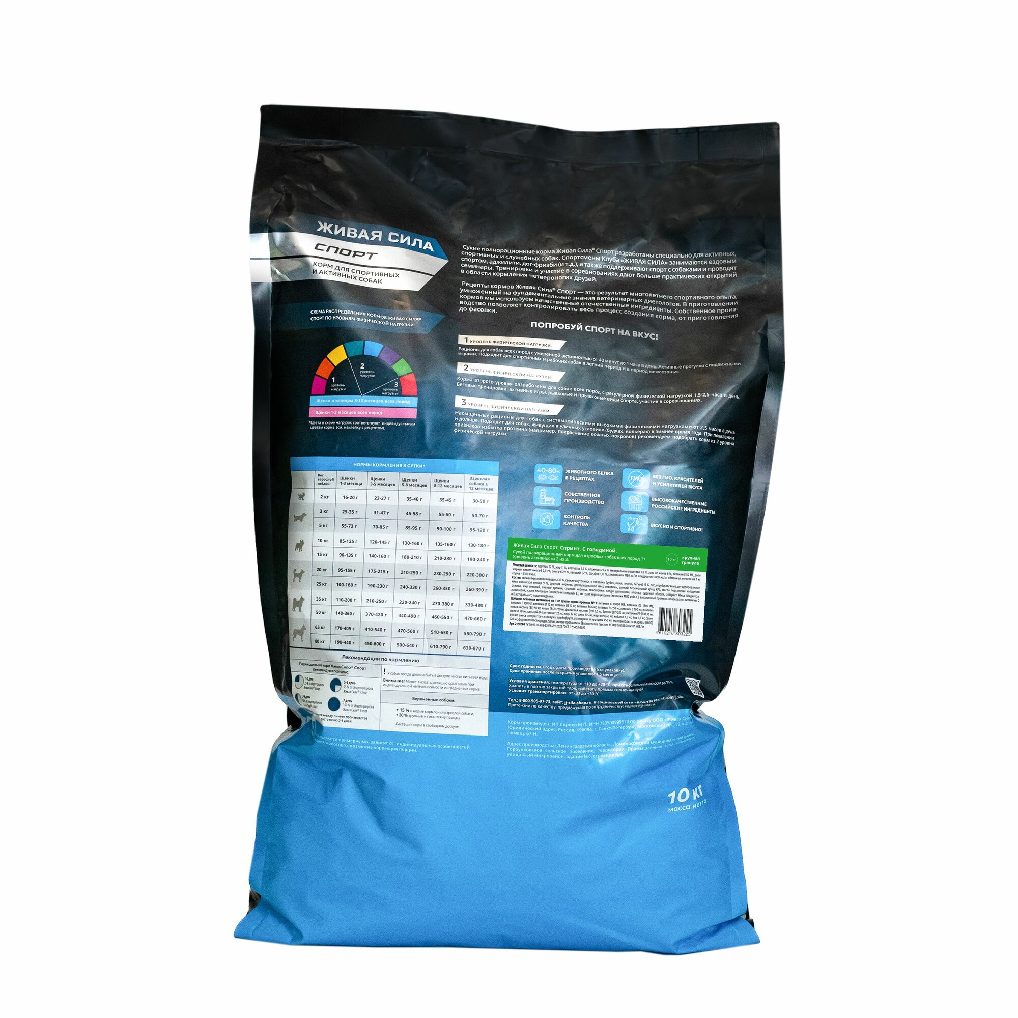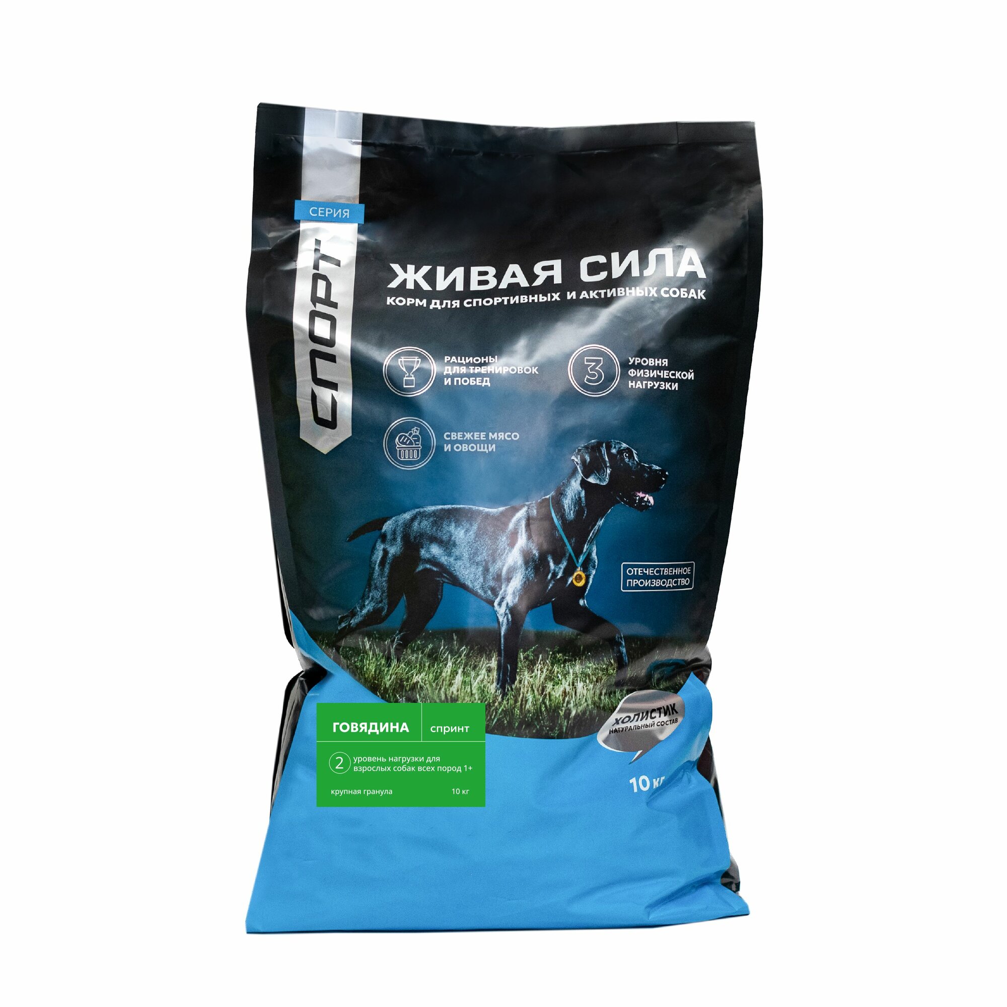 Живая сила Спорт Сухой корм для взрослых собак "Спринт" с говядиной, крупная гранула 10 кг