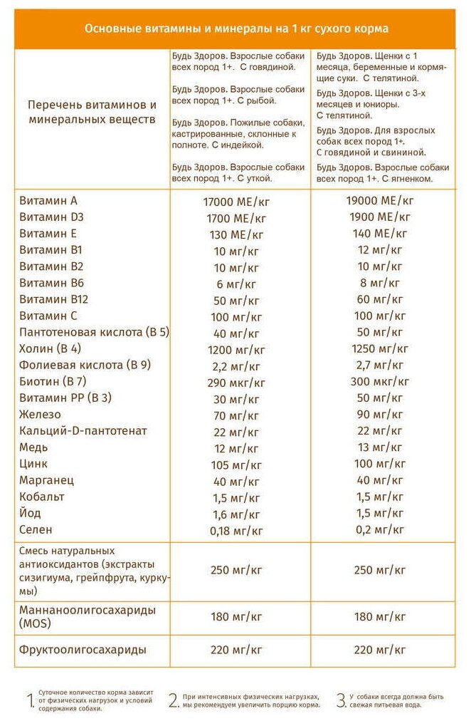 | Минеральные вещества | холин, биотин, железо, медь, цинк, марганец, кобальт, йод, селен |