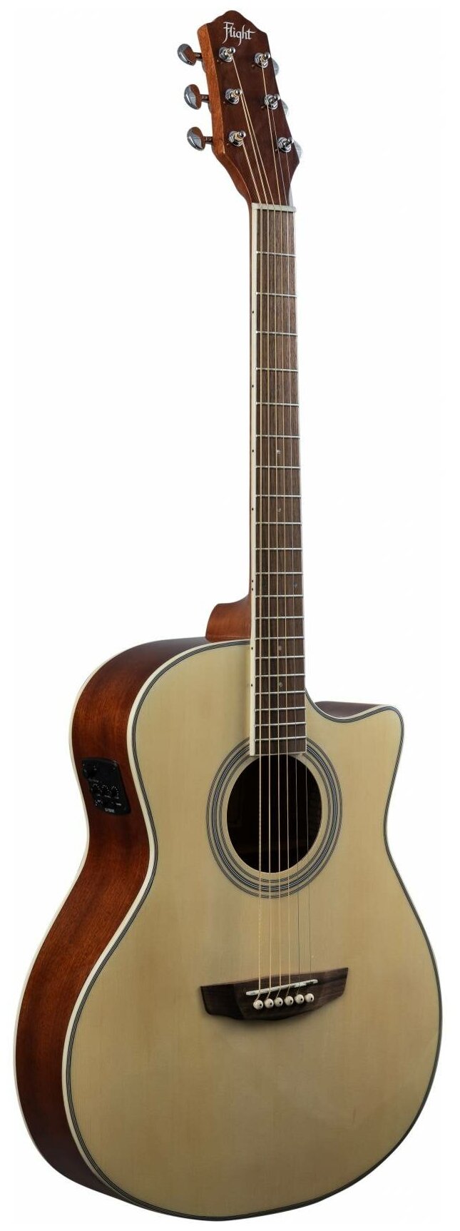 FLIGHT AG-210 CEQ NA электроакустическая гитара с вырезом, цвет натурал, скос под правую руку