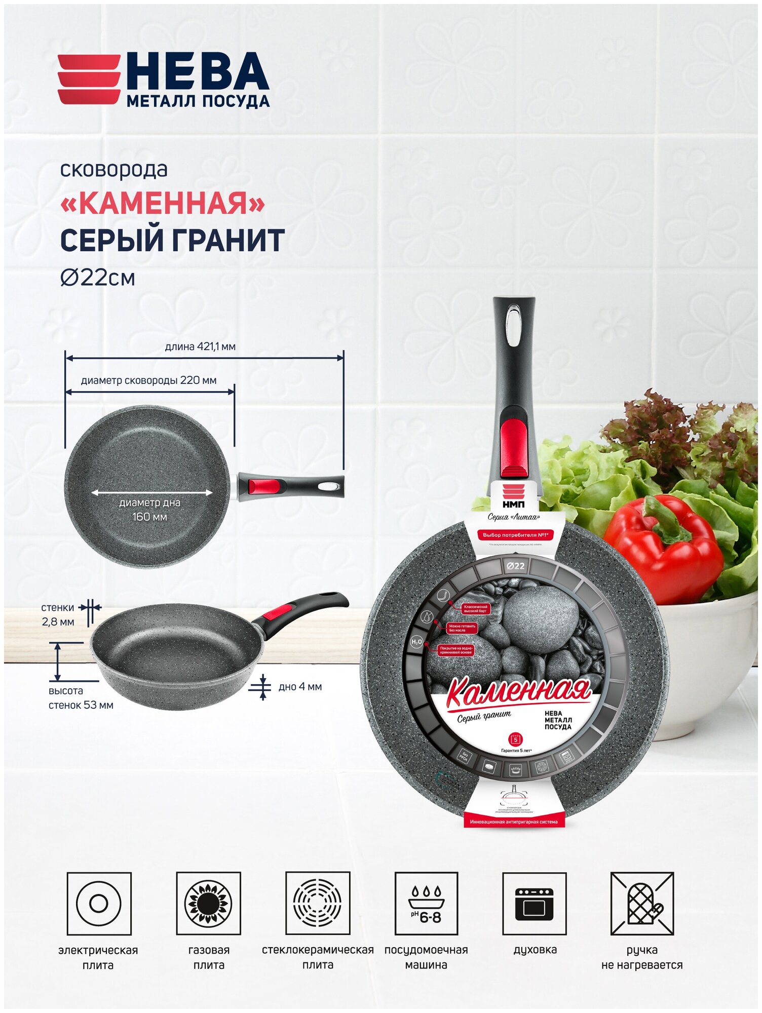 Сковорода НМП "Каменная" Серый гранит 22 с/р (19022) . интересное: