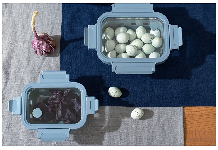 Надёжная конструкция защёлок, качественные материалы. Нижняя защитная резинка надёжно держится и легко снимается/надевается. Резиновое кольцо уплотнителя по периметру тоже съёмное! Легко всё разобрать, промыть, а потом опять собрать. Прозрачная крышка тоже состоит из стекла. Контейнер по-настоящему герметичен. Если даже в сумке перевернётся, то ничего из него не протечёт. |
