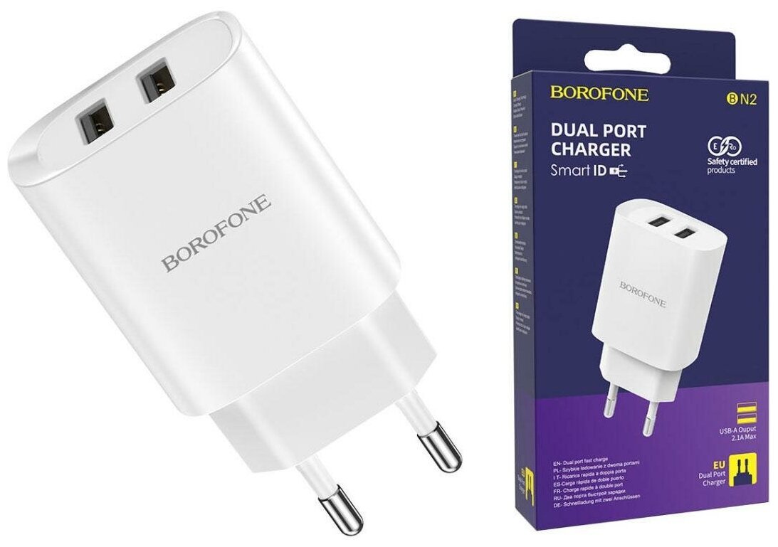 Сетевое зарядное устройство (СЗУ) Borofone BN2 (2 USB) 2.1 А, белый