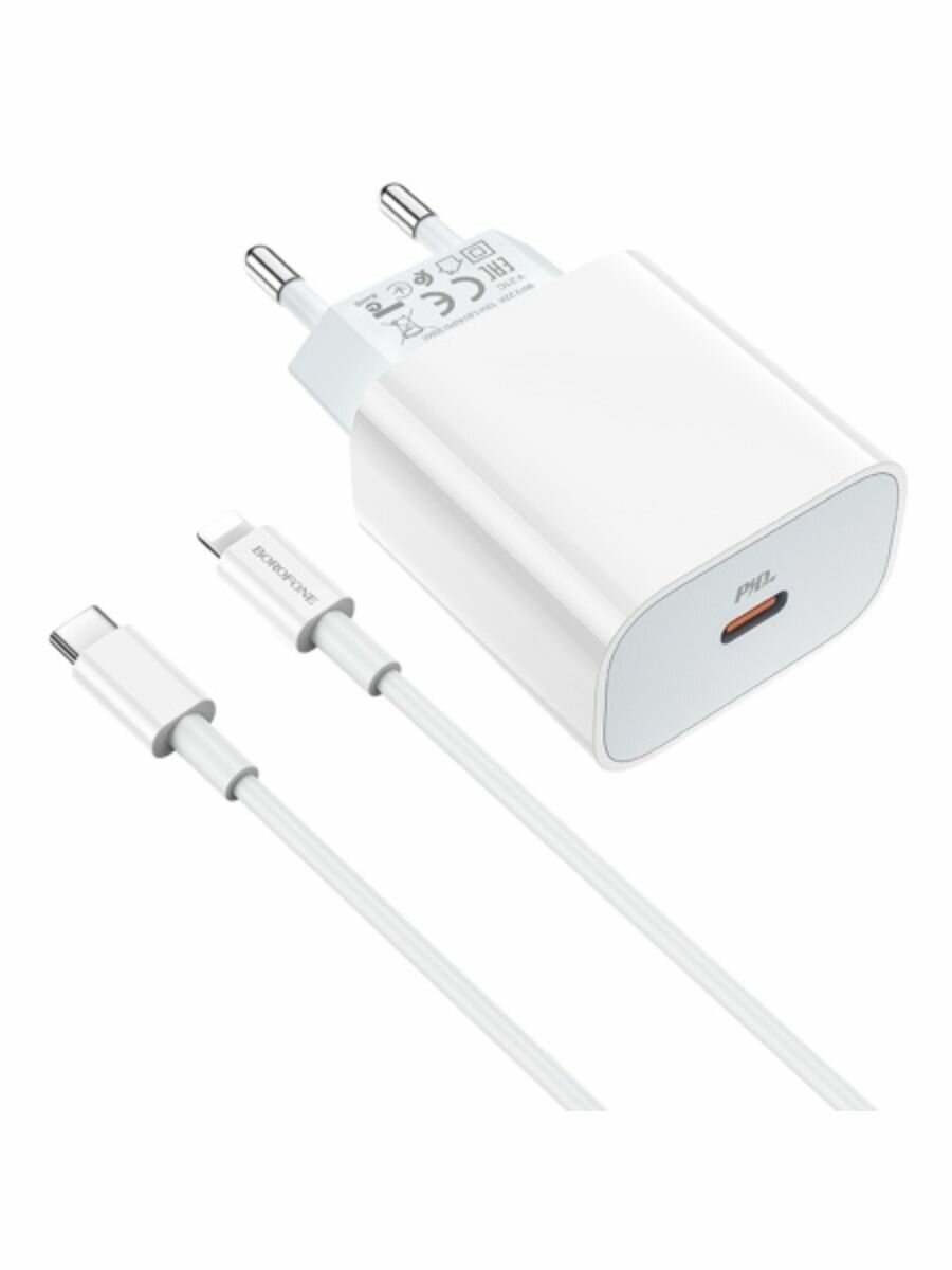 Купить Сетевое зарядное устройство BOROFONE BA38A Plus Speedy, 20W + кабель Lightning, 1м, белый
