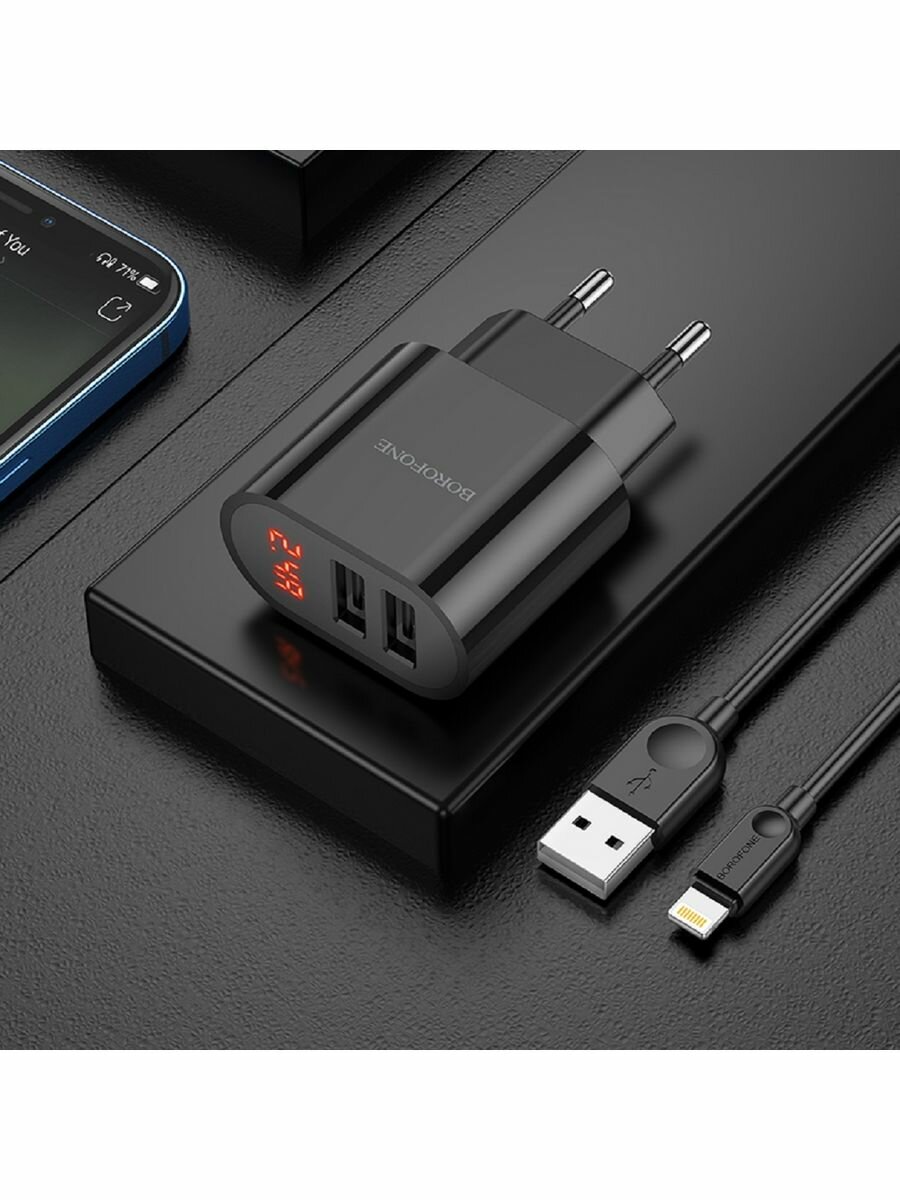 Borofone Сетевое зарядное устройство Borofone BA63A, 2xUSB, 2.4 А, дисплей, белое