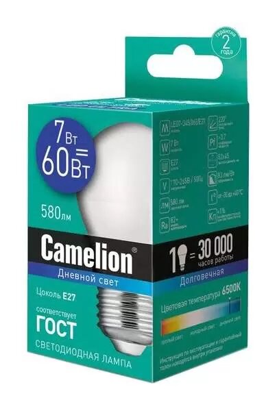 Лампочка CAMELION LED7-G45/865/E27 7 Вт, Е27, белый интересное: