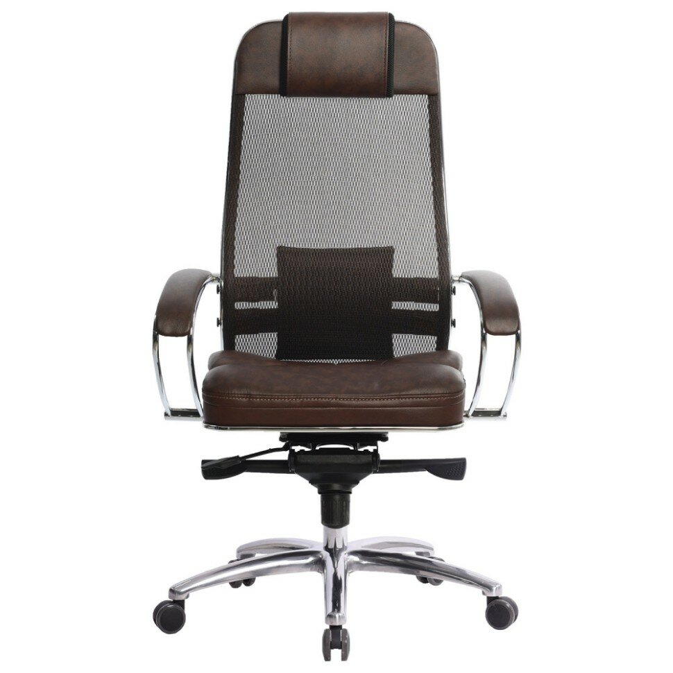 Кресло офисное метта "SAMURAI" SL-1.04, сверхпрочная ткань-сетка/экокожа, темно-коричневое