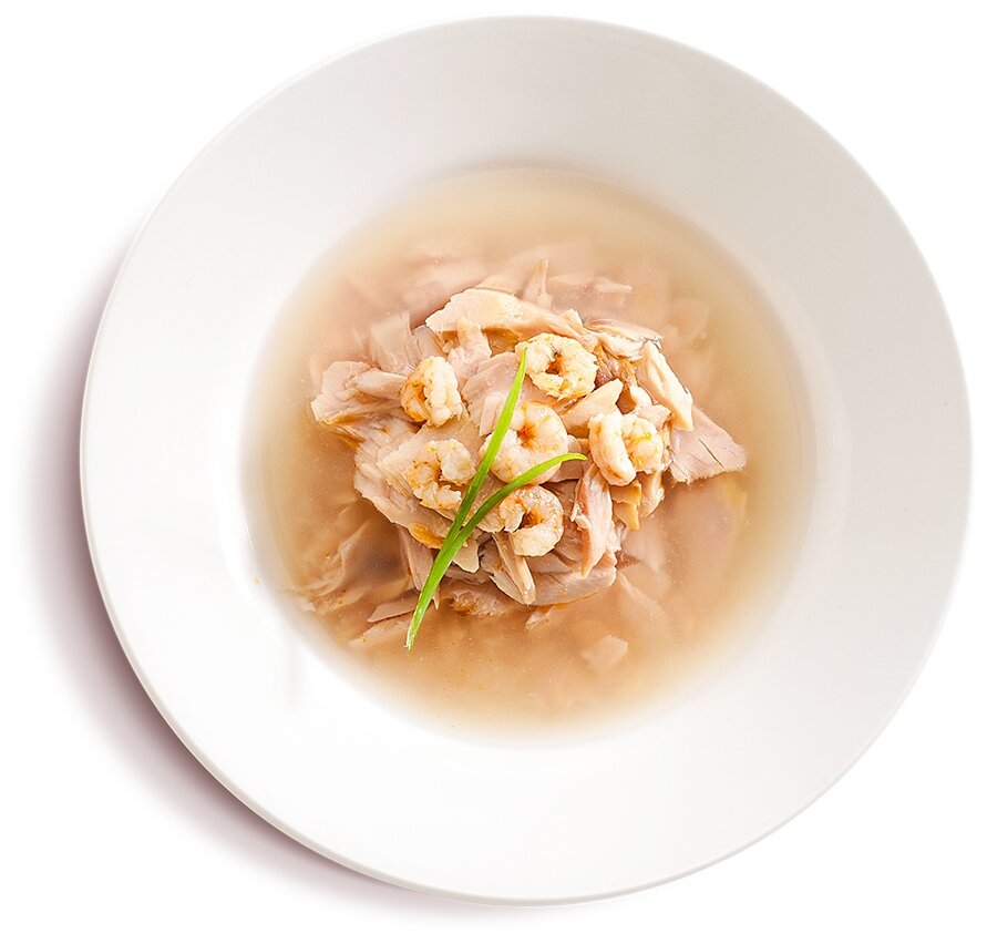 Влажный корм для кошек Pettric Cherie Signature Gravy, смесь желтоперого и полосатого тунца с креветками в подливе, 80 г х 24 шт