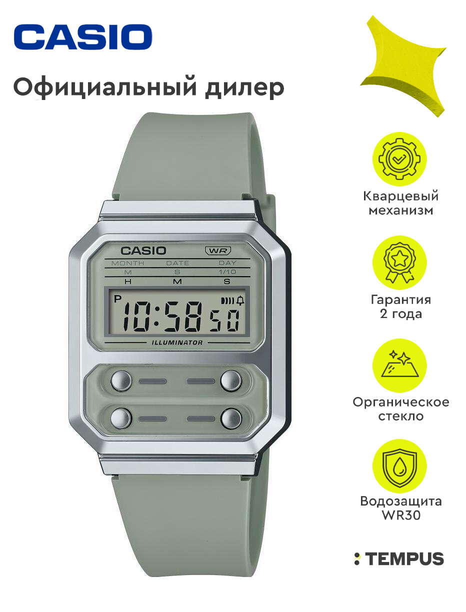 Наручные часы CASIO Наручные часы Casio Vintage A100WEF-3A, зеленый, серебряный