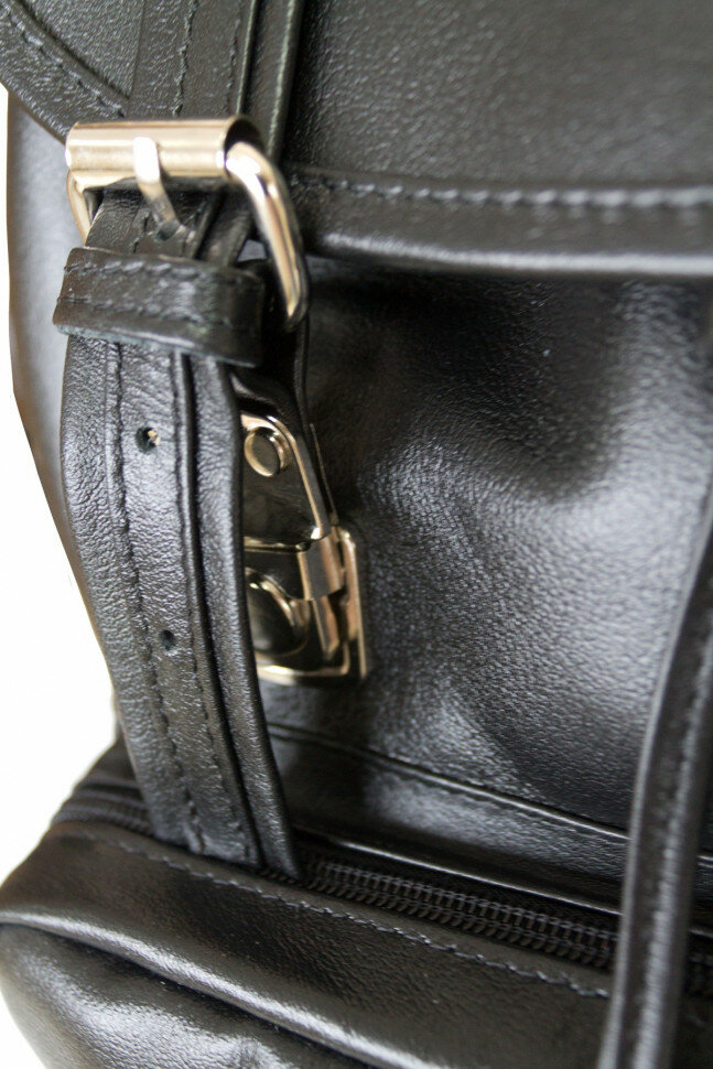| Отзыв: | Интересный «потайной» замок и регулировка объема. Размер достаточно внушительный. Внутри одно отделение и на стенках кармашки для мелочевки. |