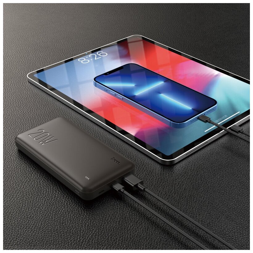 Купить Повербанк для телефона 10000 mAh с быстрой зарядкой QC 3.0 + PD 3.0 маленький Hoco J87 Tacker Type C Черный для Айфона, Андроид, Самсунг, Хонор