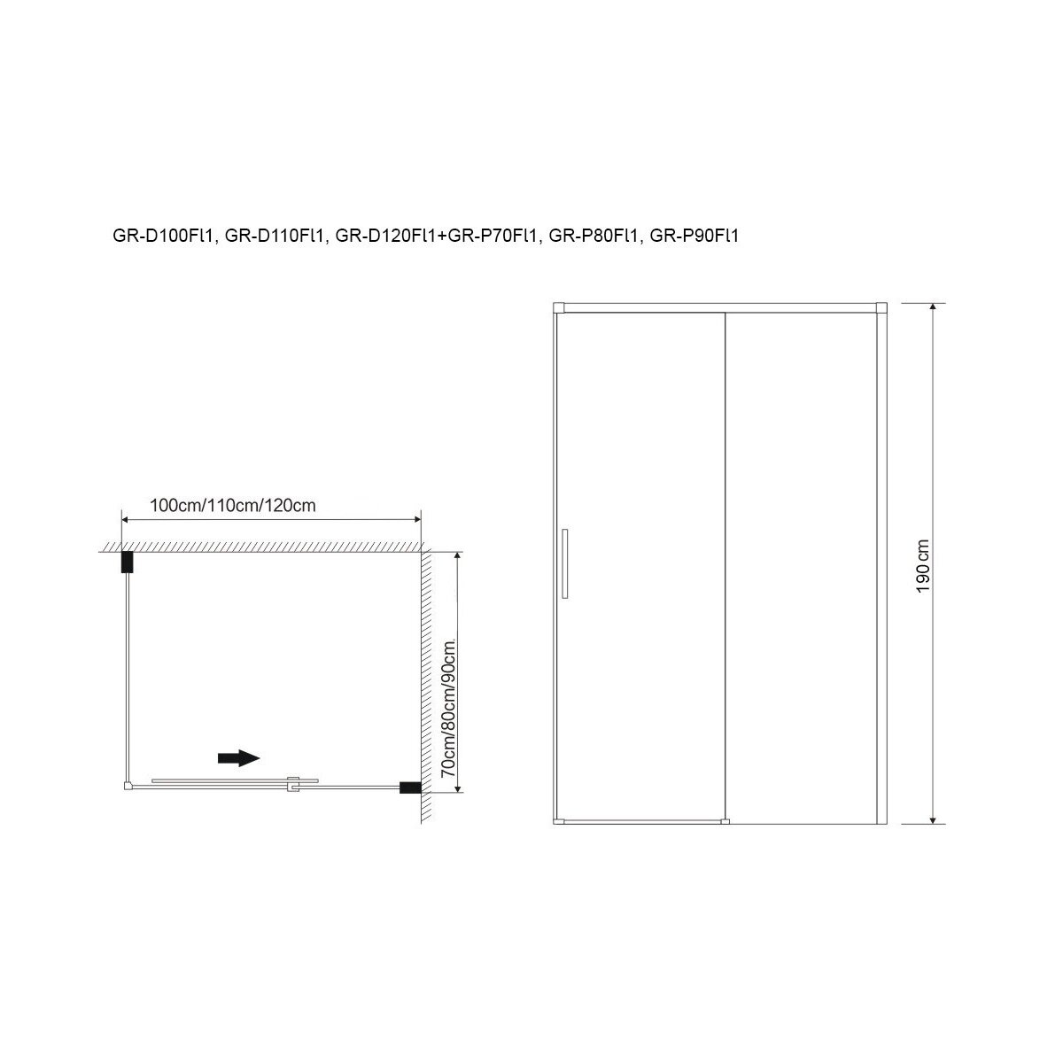 Душевое ограждение Grossman GR-D100-P80 Fly1 (100*80*190) прямоугольник, дверь раздвижная