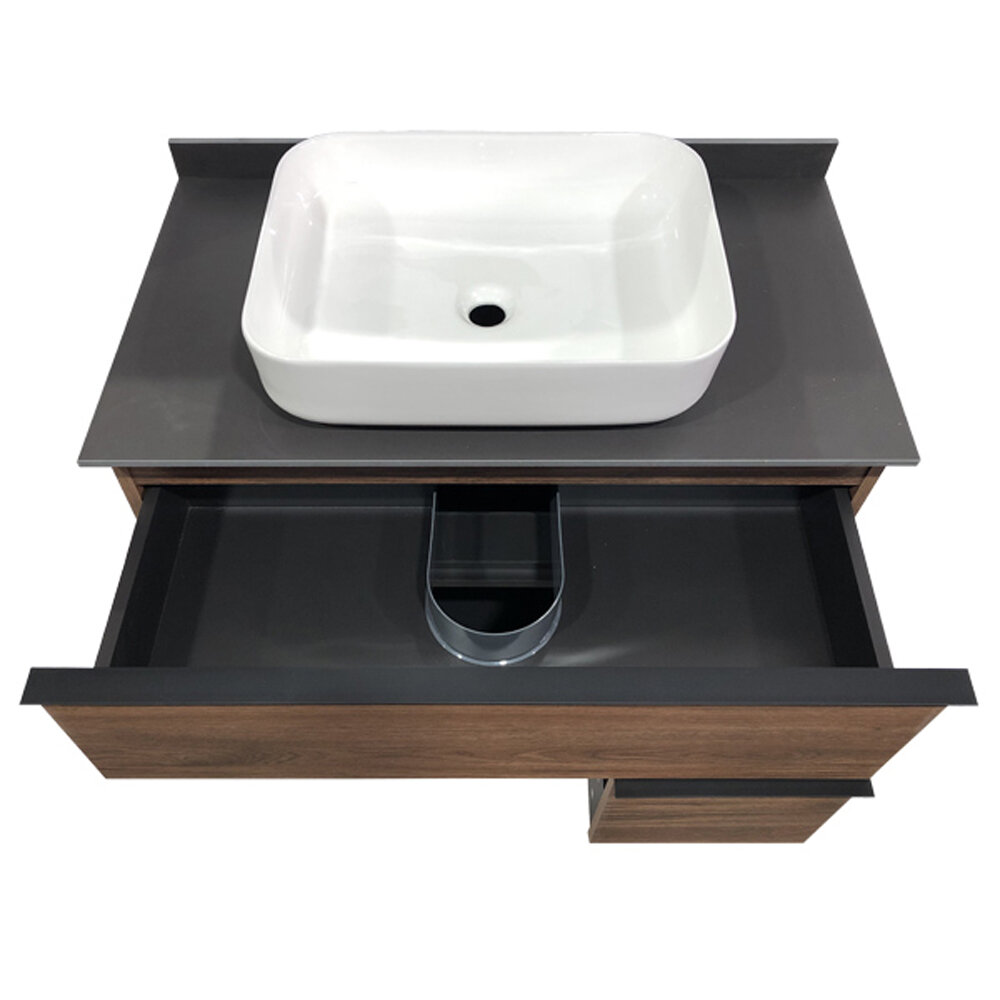 Тумба с раковиной Comforty Порто 90 9110 подвесная дуб темно-коричневый/черный муар