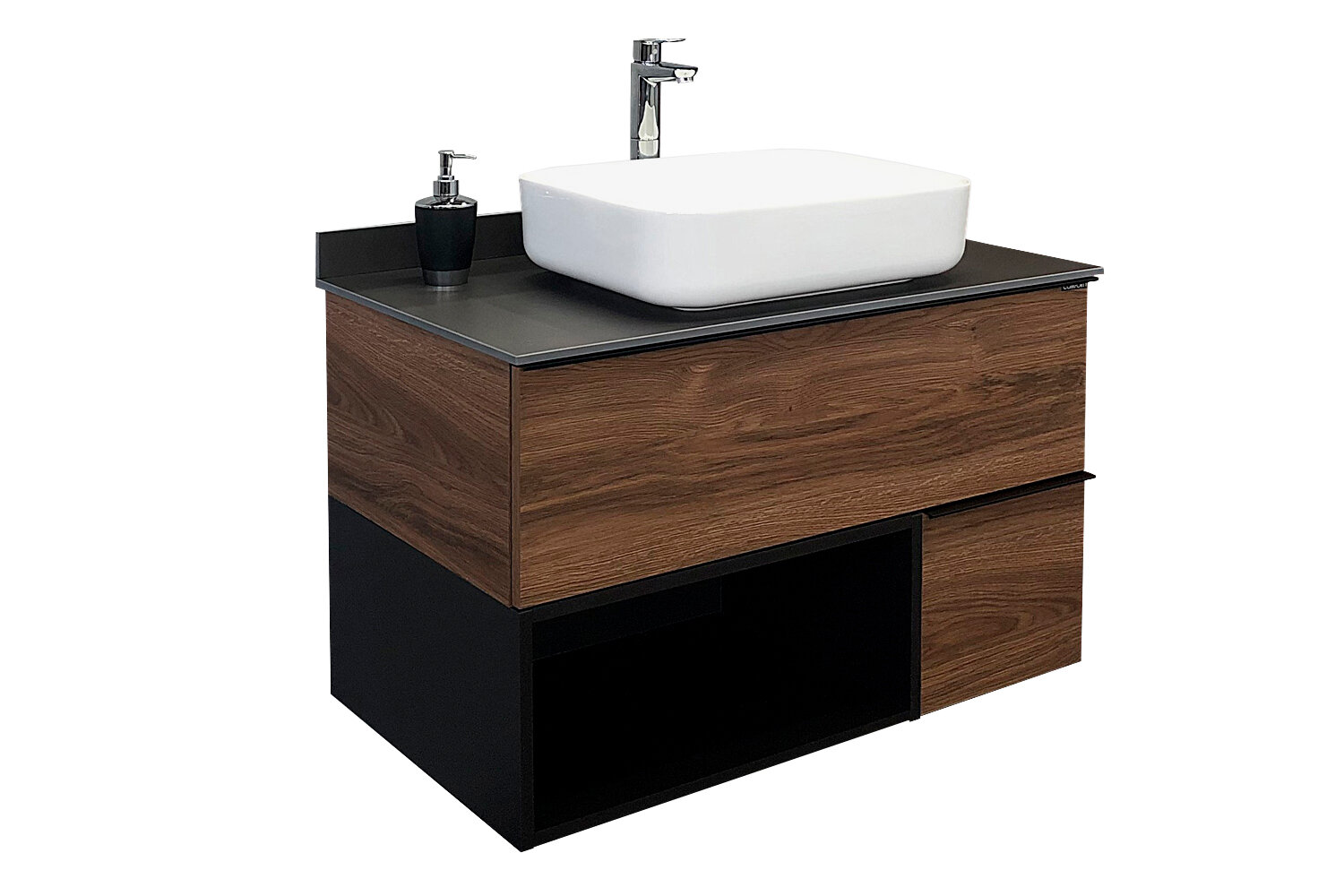 COMFORTY. Тумба-умывальник "Бонн-75" дуб темный с раковиной COMFORTY 75E черная матовая
