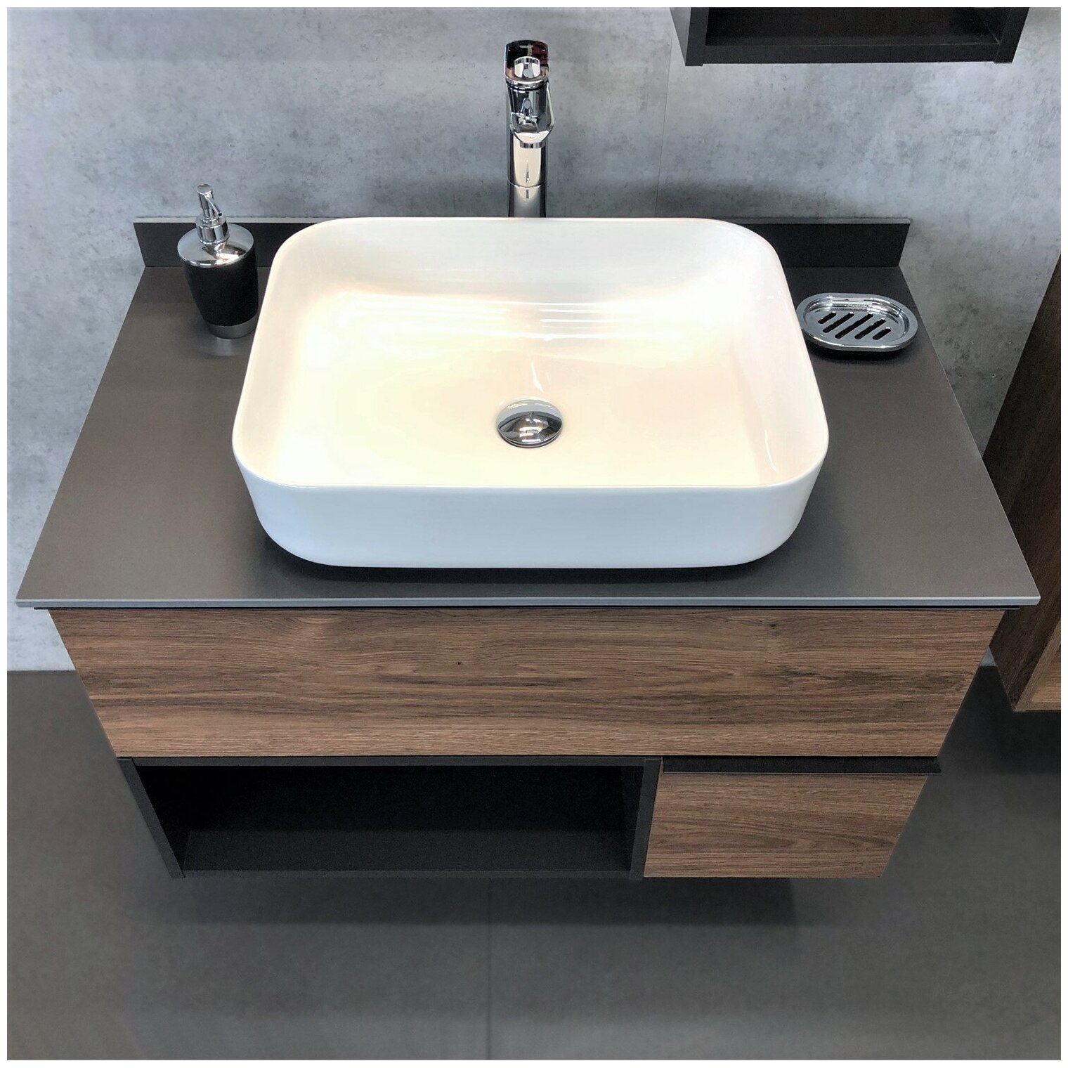 Тумба-умывальник Comforty Никосия 80П дуб темный с раковиной Fest 80