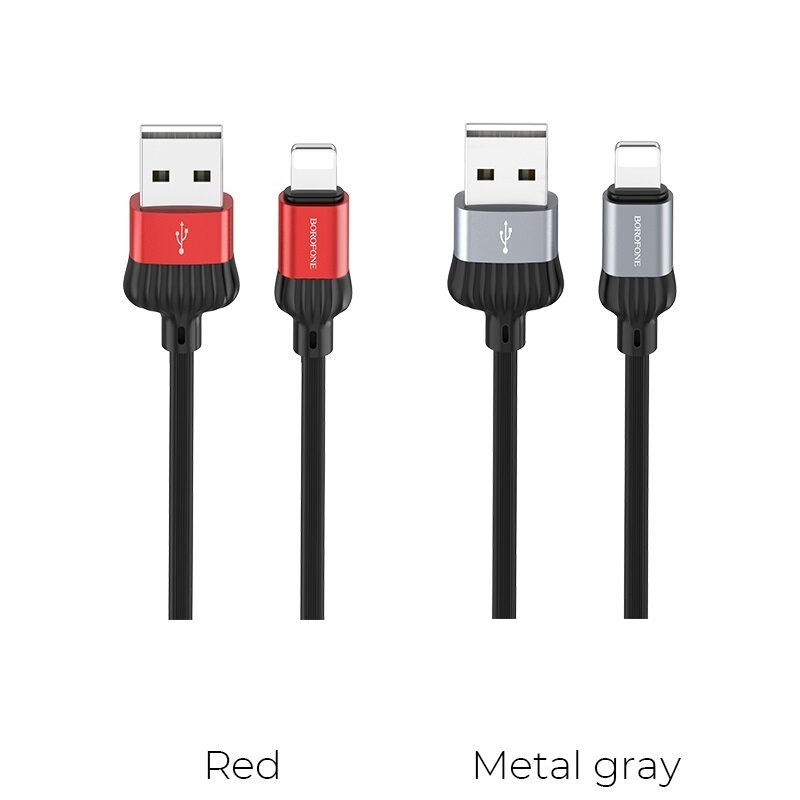 Кабель USB BOROFONE BX28 Dignity, USB - Lightning, 2.4А, 1 м, серый металлик