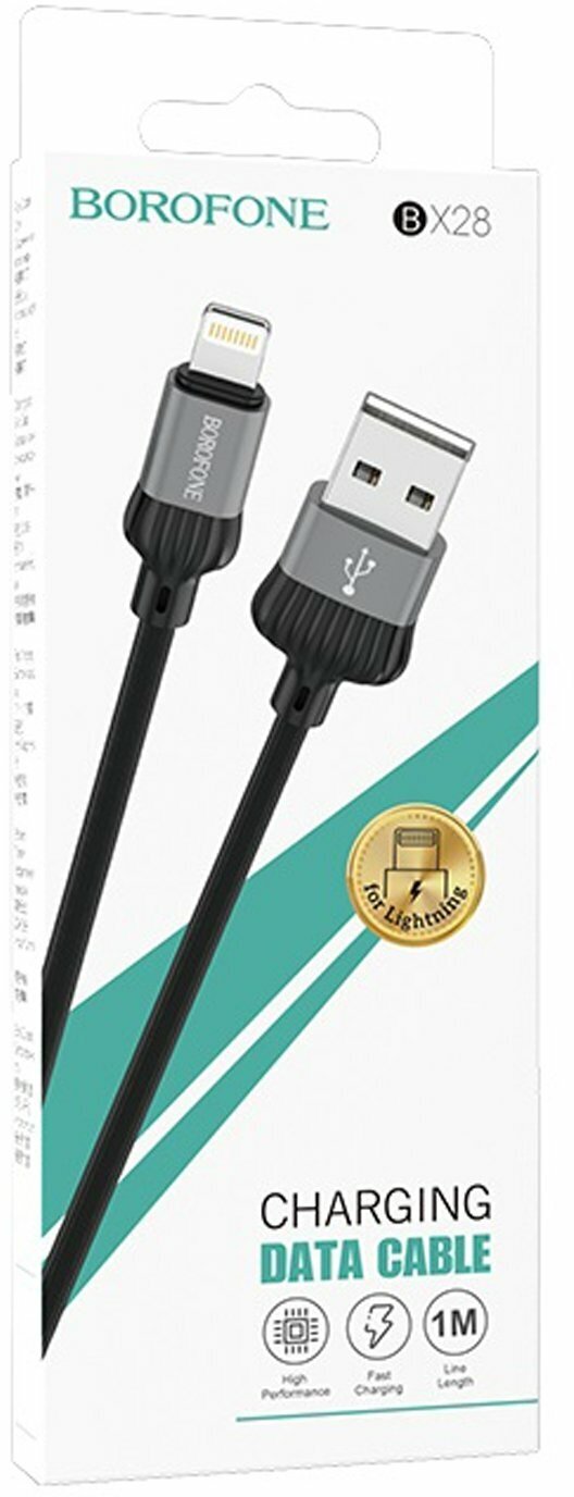 USB кабель BOROFONE BX28 Dignity Lightning 8-pin, 1м, 2.4A, PVC (серый)