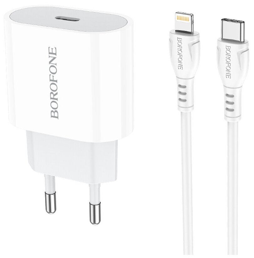 Сетевое зарядное устройство Borofone Ba61a, Type-C, 2.1 А, кабель Type-C - Lightning, белый Borofone
