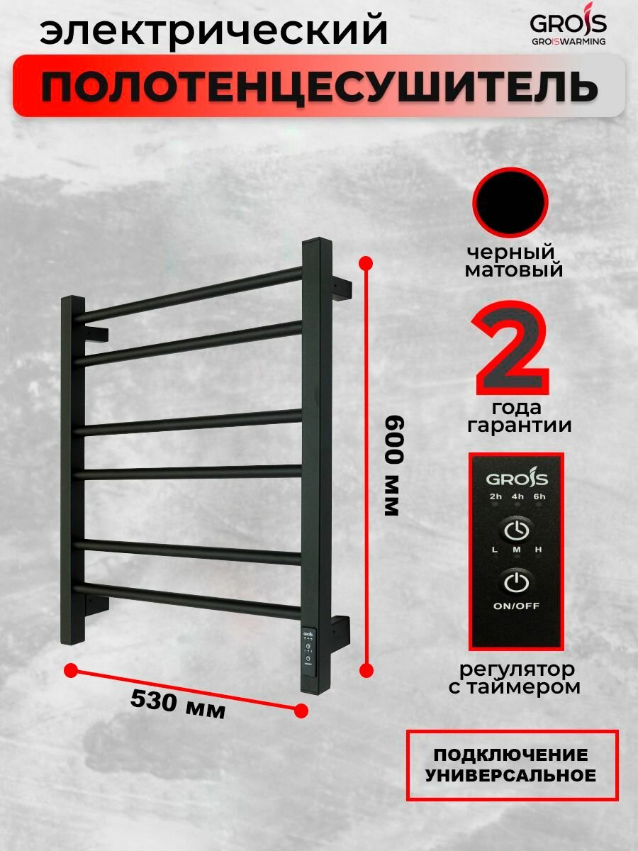 Электрический полотенцесушитель GROIS GR-111 400x600 черный матовый