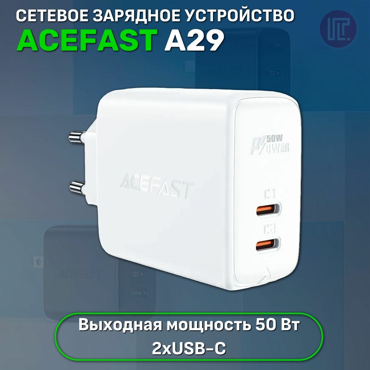 Зарядное устройство ACEFAST A29 PD50W GaN USB-C+USB-C dual port charger (EU)