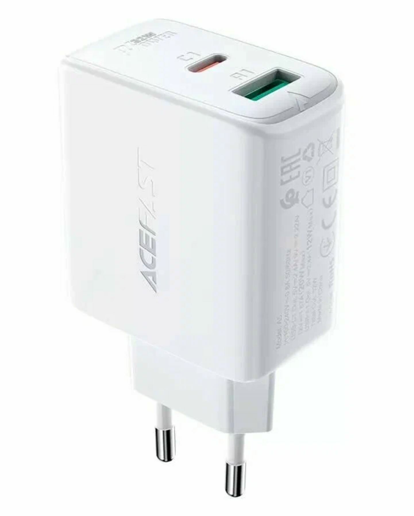 Сетевое зарядное устройство ACEFAST A29 GaN PD50W (2xUSB-C) Fast Charge Wall Charger белое (EU)