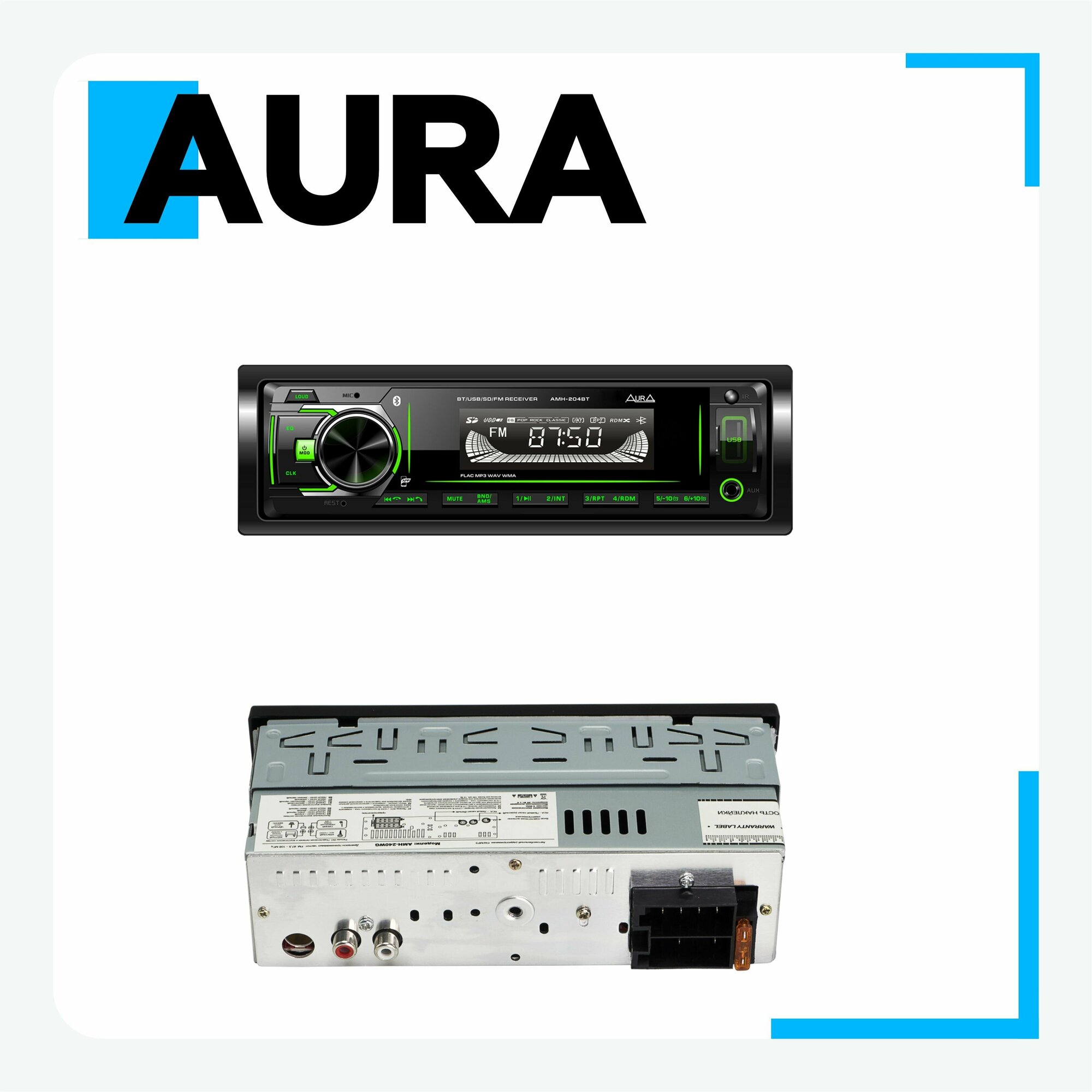 Автомагнитола 1DIN. AURA AMH-201BT /зеленая/USB/SD/FM/Bluetooth
